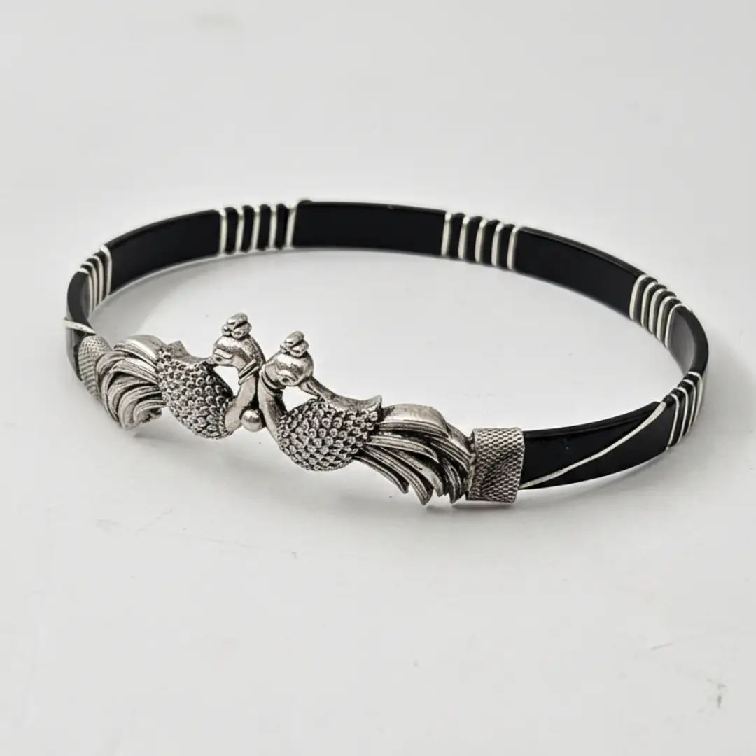 If you are searching for a silver noya design with price options that offer luxury, this Antique Twin Peacock Bangle delivers exceptional quality. Moreover, the detailed double-peacock motif makes it a versatile choice for weddings and traditional ceremonies. It also complements a sophisticated ethnic wardrobe perfectly while making a bold style statement. Consequently, you receive a piece that is as durable as it is beautiful. Whether you pair these bangles with an exclusive silver dot design statement necklace or wear them alone, they command attention. Indeed, many customers choose our 925 ORIGINAL SILVER NOA BANGLES FOR WOMEN because of their authentic oxidized finish. This is because we prioritize the purity of the metal and the precision of the engraving in every single batch.