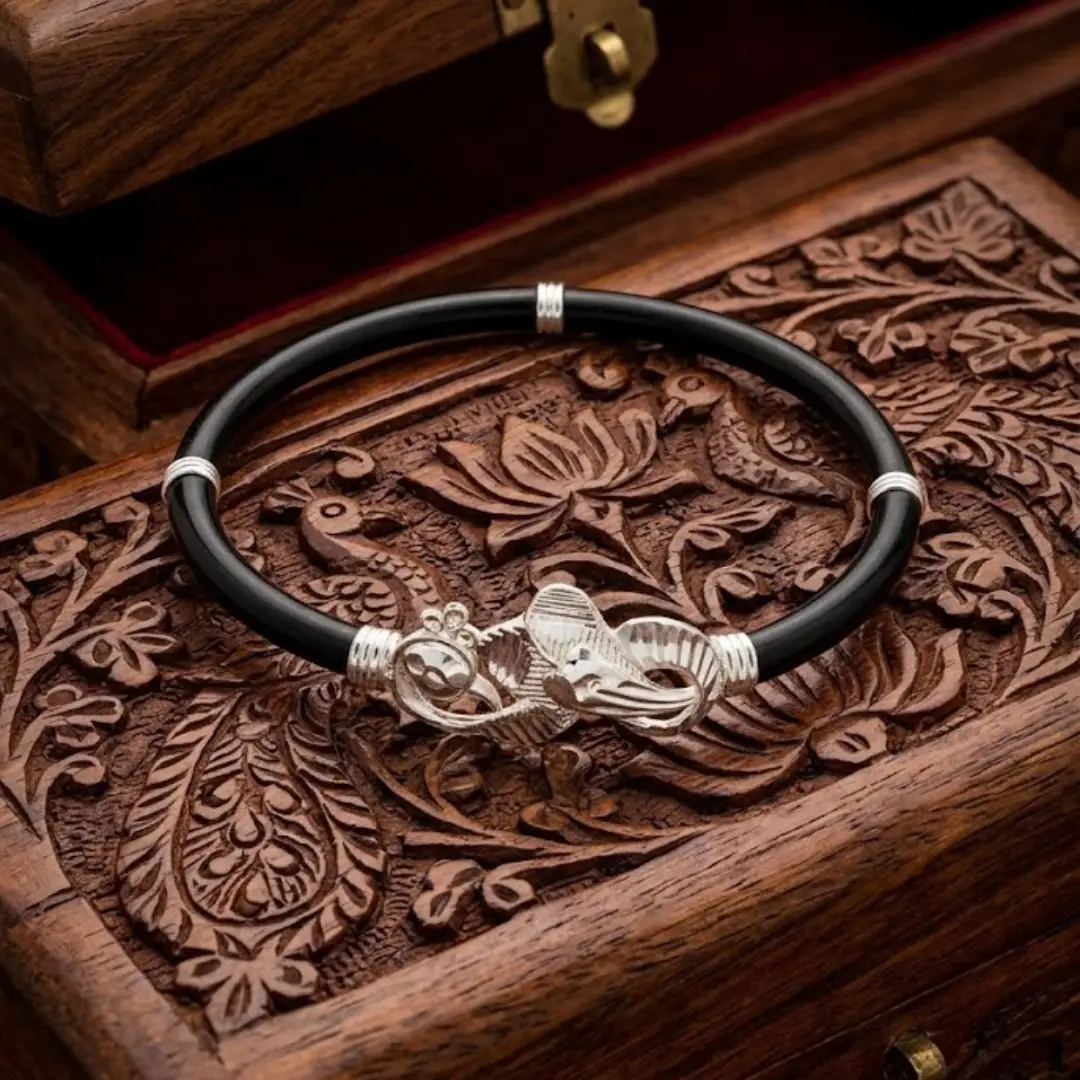 Whether you are looking for a protective charm or a sophisticated accessory, this bangle is crafted to perfection. The silver centerpiece showcases detailed textures and a brilliant polish that reflects superior artistry. As a symbol of strength and tradition, it makes for a perfect gift for yourself or a loved one.