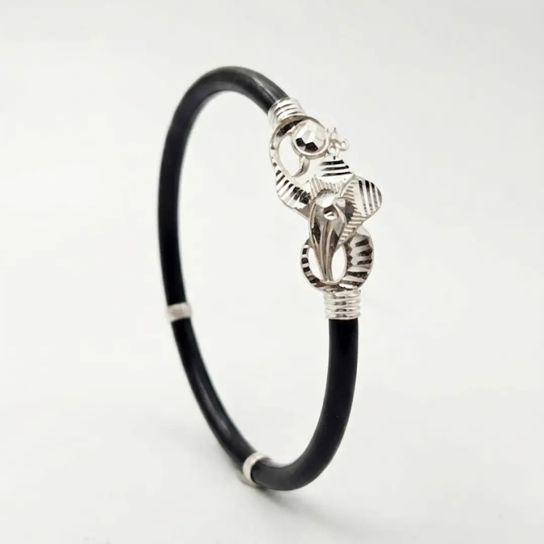 Elevate your style with the timeless elegance of the 925 Silver Noya Bangle from The Velvet Box. This exquisite piece combines the traditional significance of the Noya with modern craftsmanship, featuring a high-quality black cord paired with intricately designed fine silver work.
