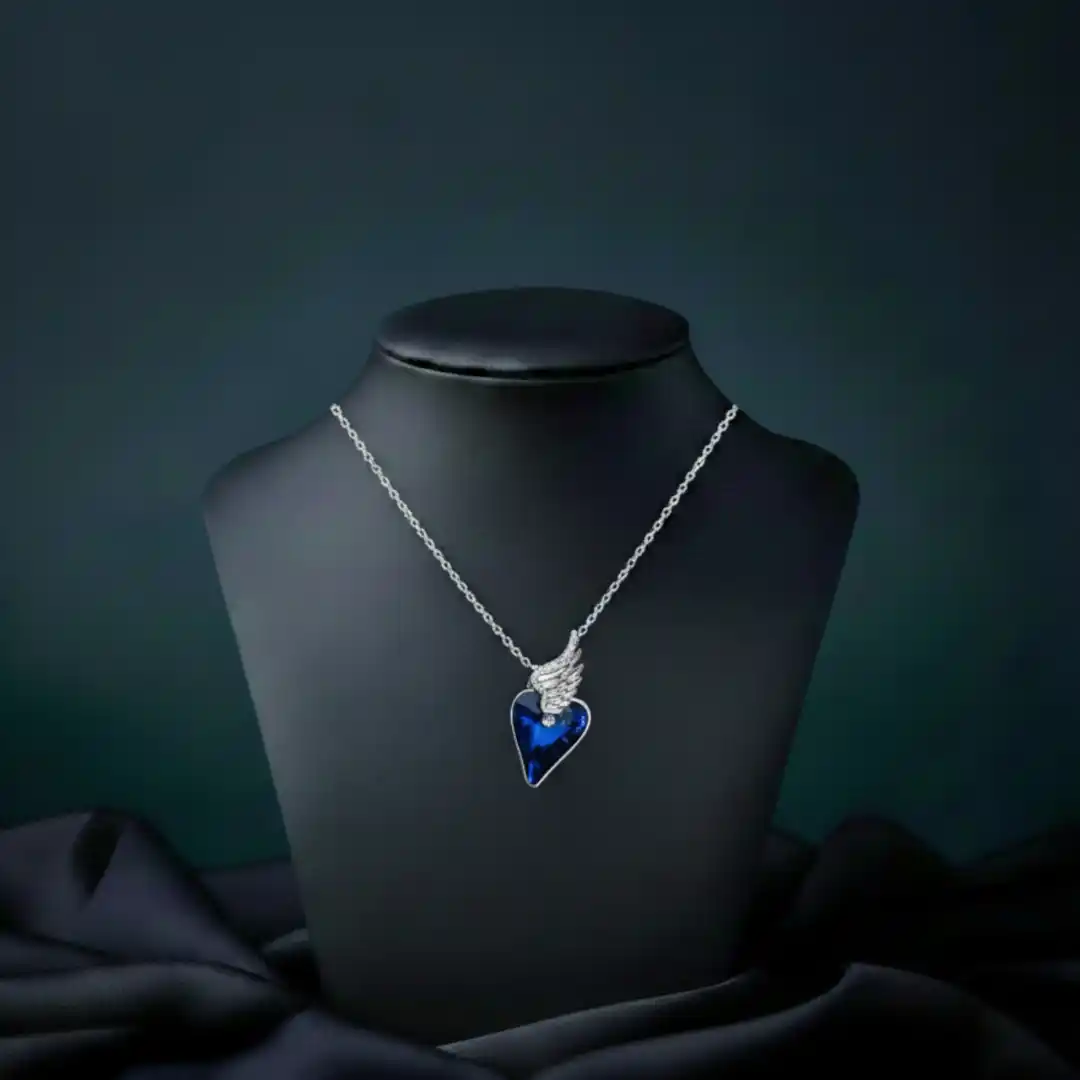 Symbolic Wing Accent: Represents love, freedom, and inner strength, adding meaning to this blue heart necklace
