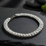 Add a bold yet refined touch to your look with this Classic Textured Cuban-Link 925 Silver Men’s Bracelet. Meticulously crafted from hallmarked 925 sterling silver, it features a signature Cuban-link design with a fine textured finish for a stylish, masculine appeal. The polished links reflect strength and confidence, while the sturdy lobster clasp ensures secure wear. Perfect for daily wear, parties, or gifting, this bracelet is a timeless piece that complements every man’s personality.