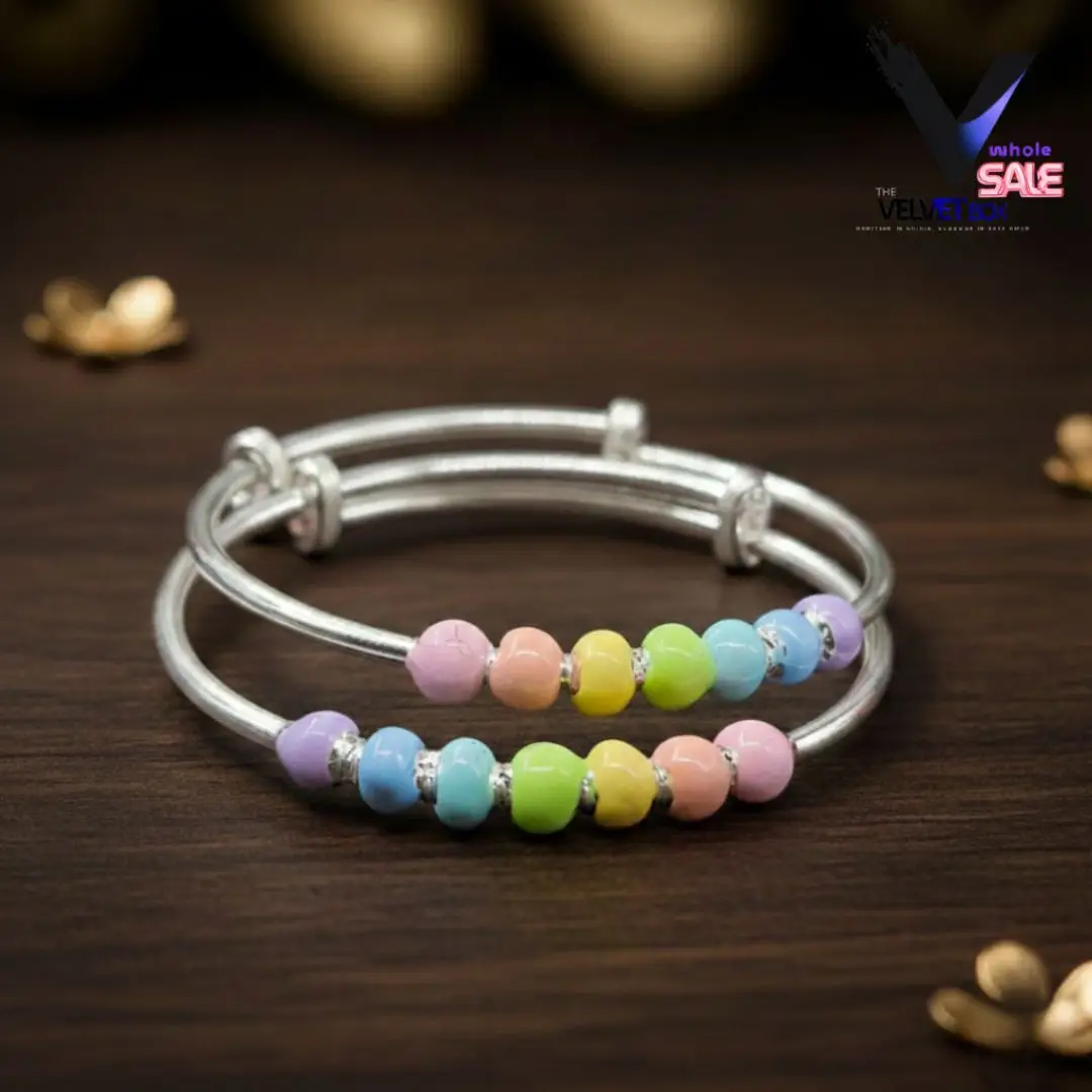 Premium Silver Baby Bangles Pair with Multicolour Beads | Perfect for Baby Boys & Girl.