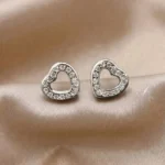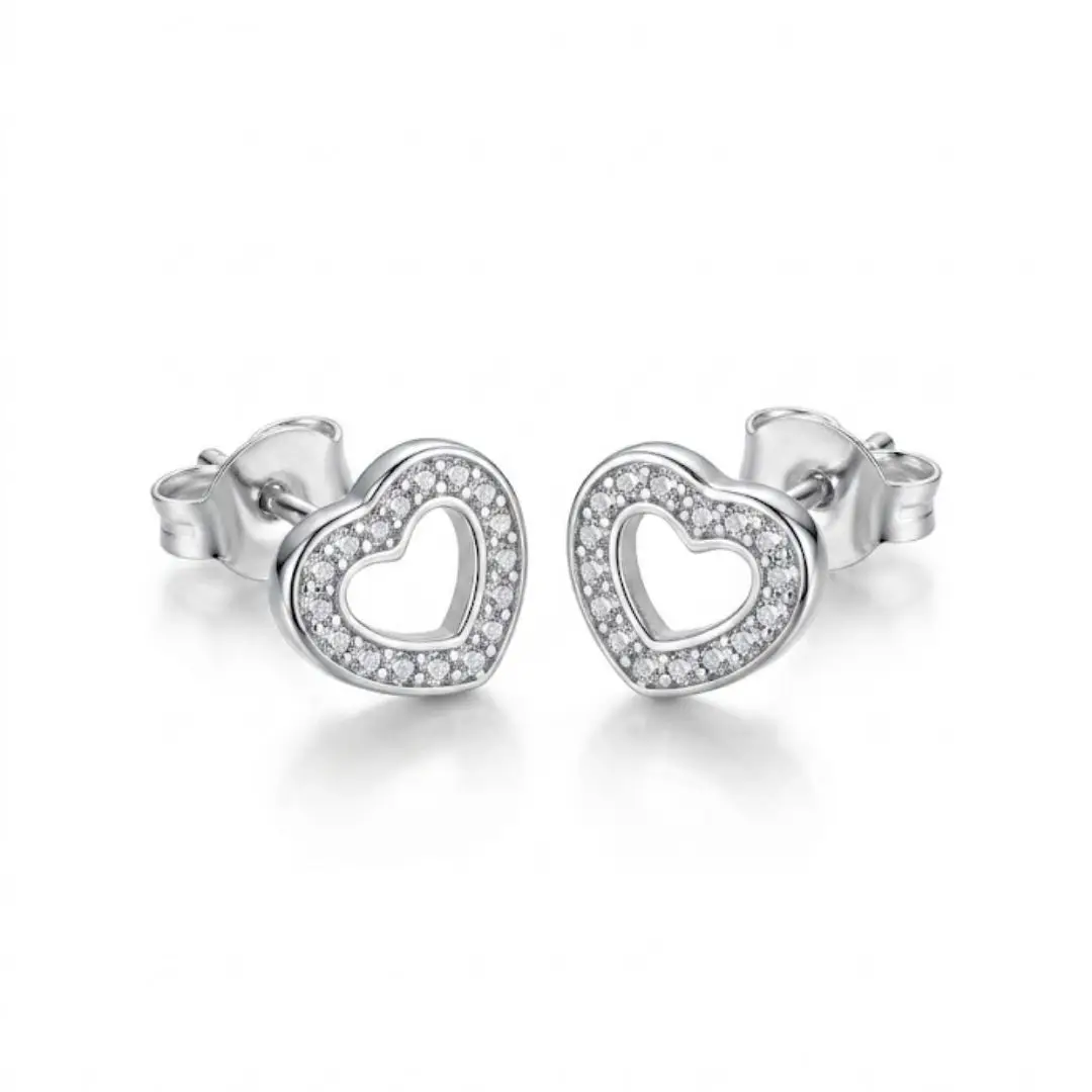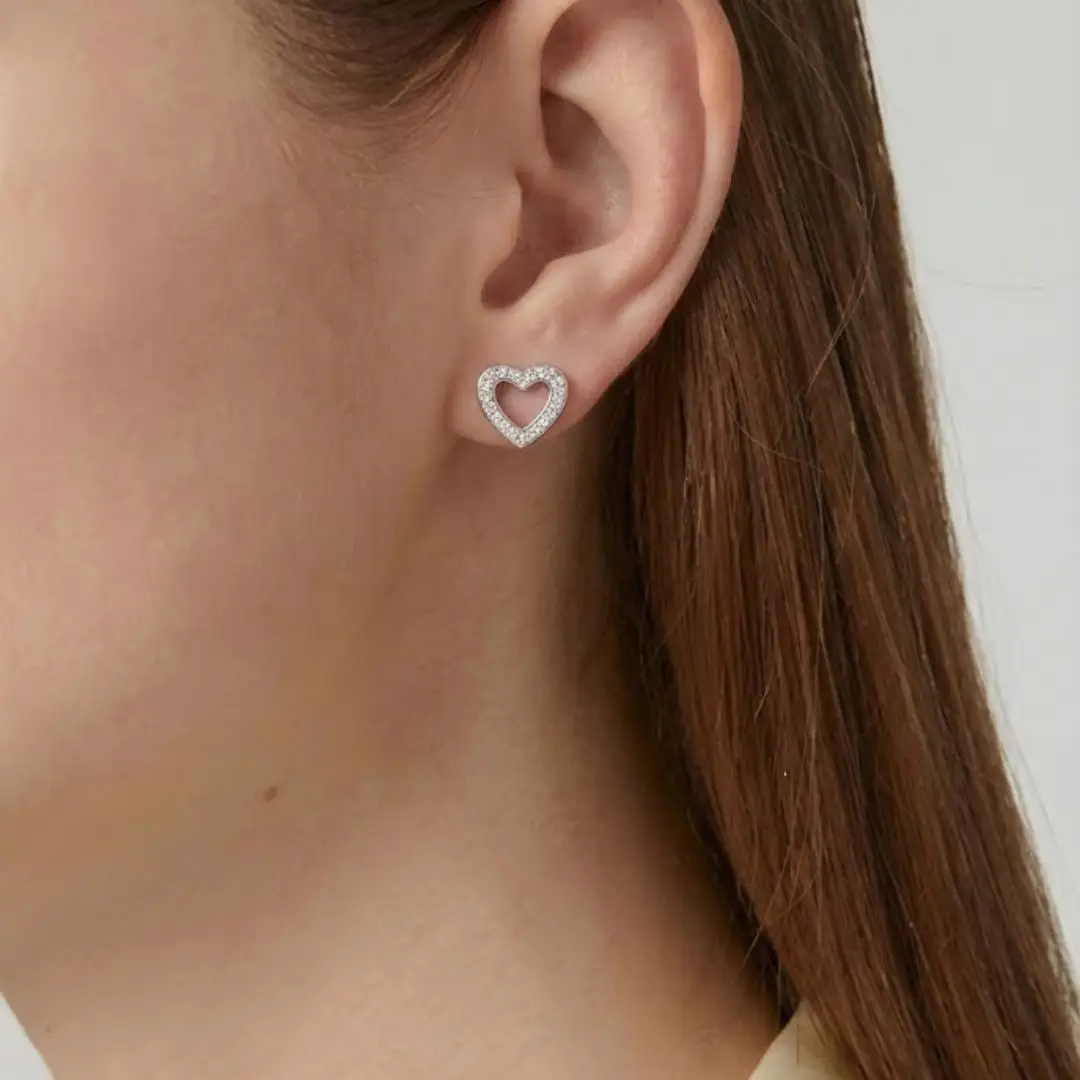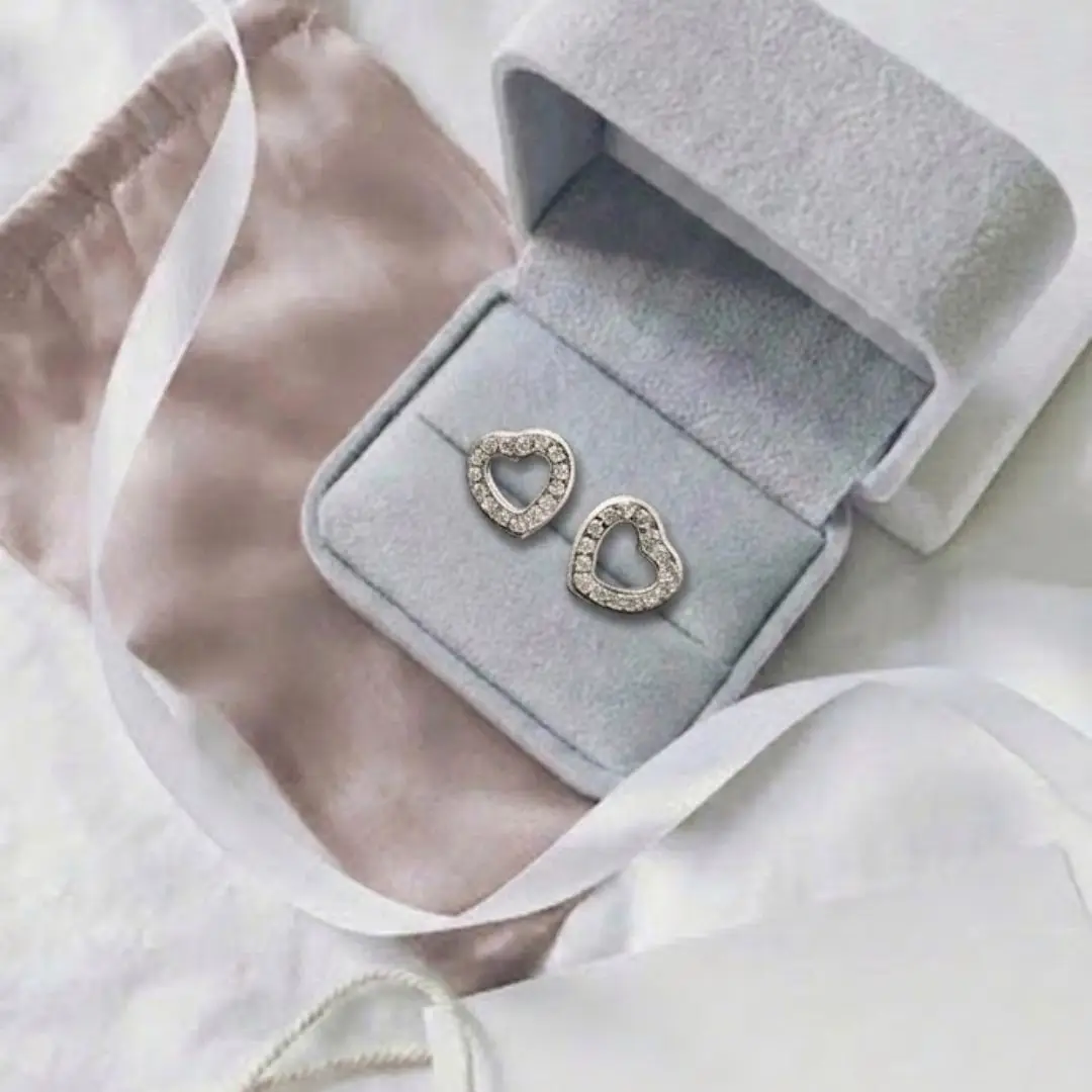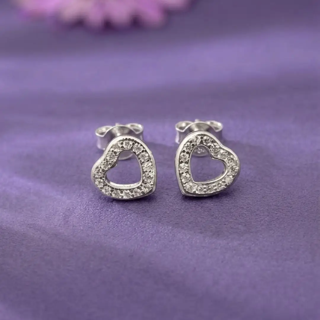 - Design: Elegant open-heart stud design with a pave-set stone finish.