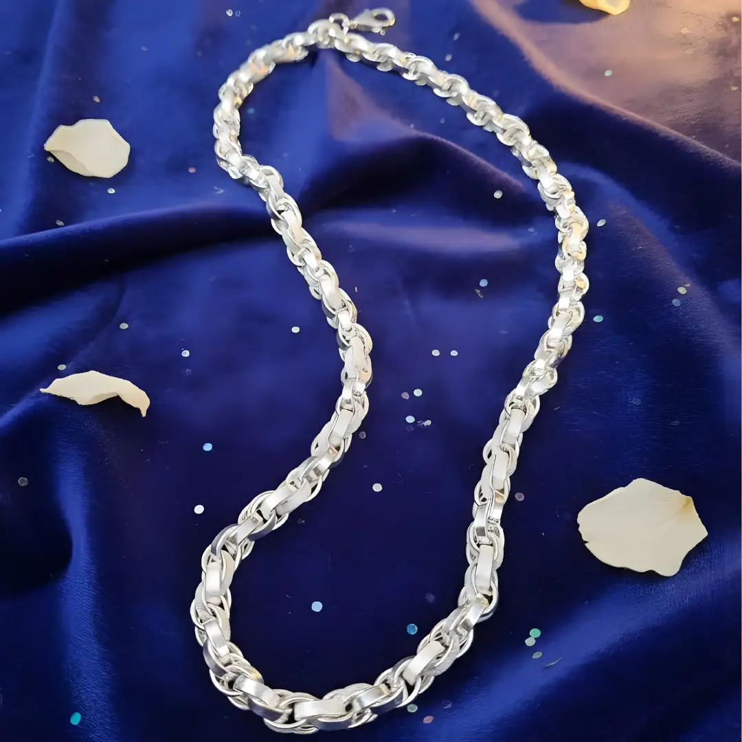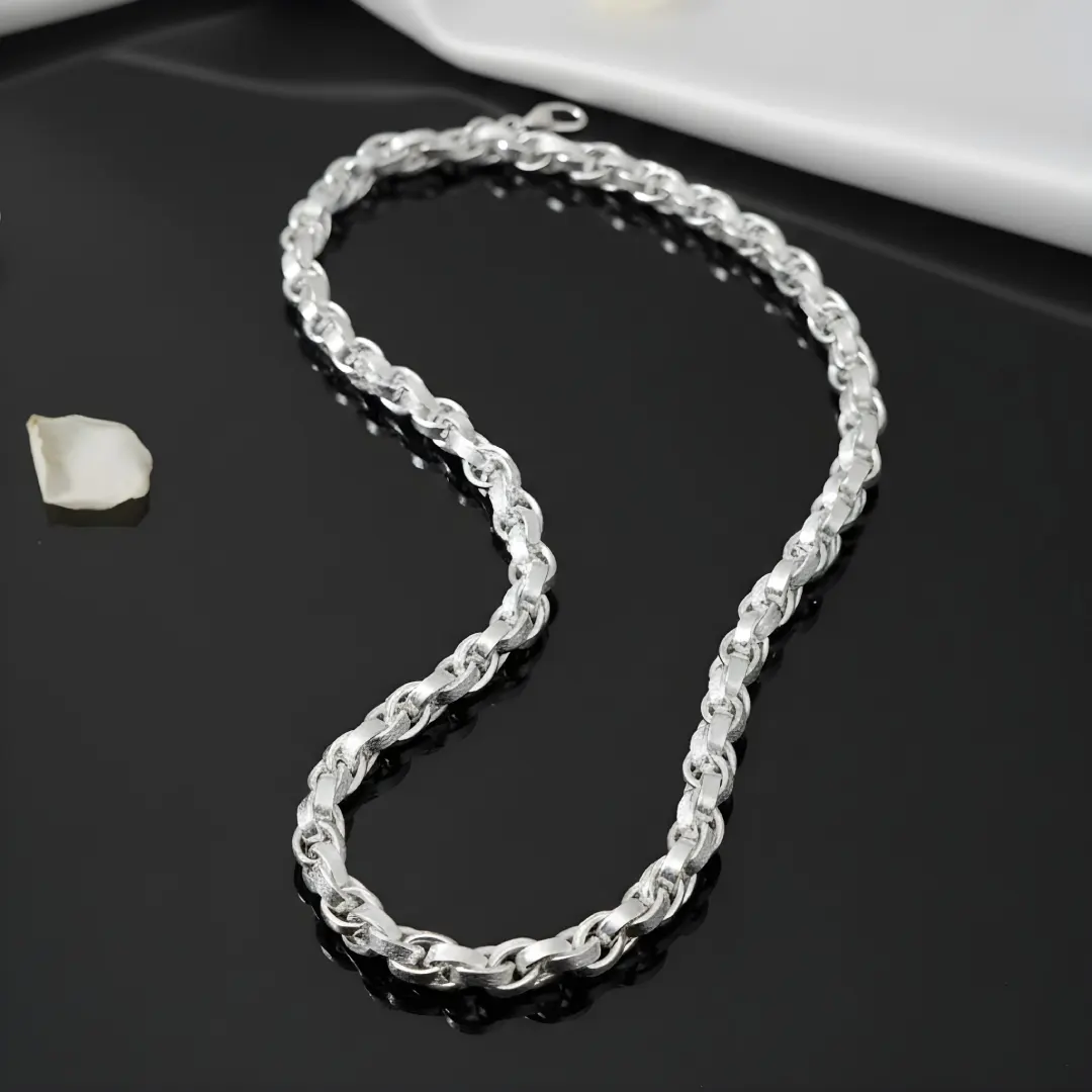 This 925 Sterling Silver Men’s Chain features a bold rope-link pattern crafted to deliver strength, shine, and everyday elegance. Made from pure hallmarked silver, the chain carries a premium polished finish that stands out without being flashy. Its durable, heavy-look design makes it ideal for daily use, gifting, and special occasions. Comfortable to wear and suitable for all outfits, this silver chain adds a confident and timeless touch to your style.