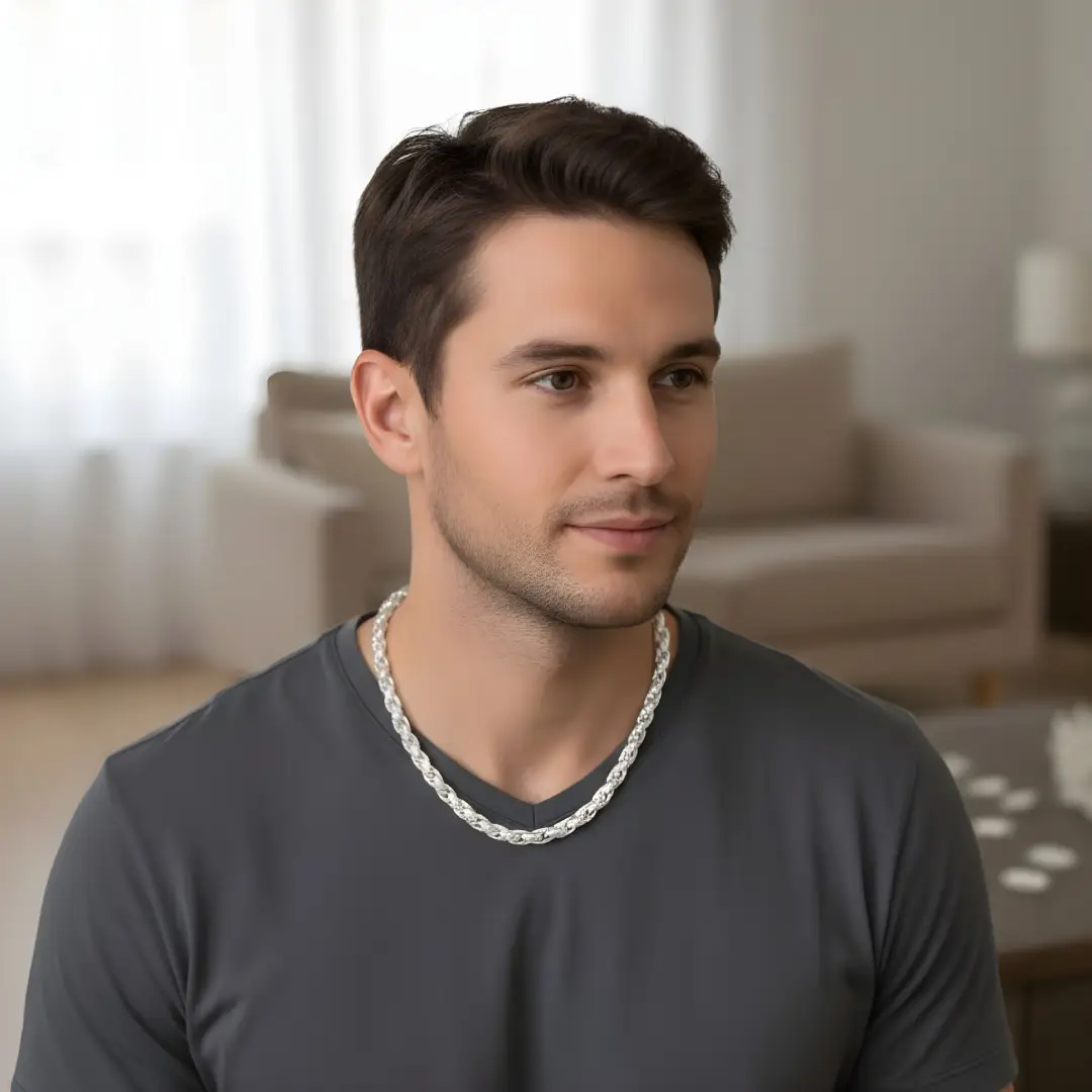 Bold Rope-Link Design – Strong, stylish chain suitable for daily wear.