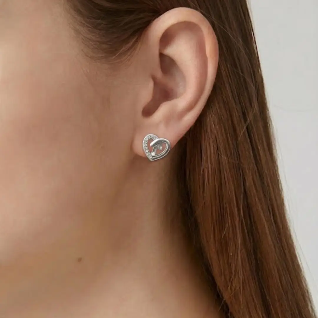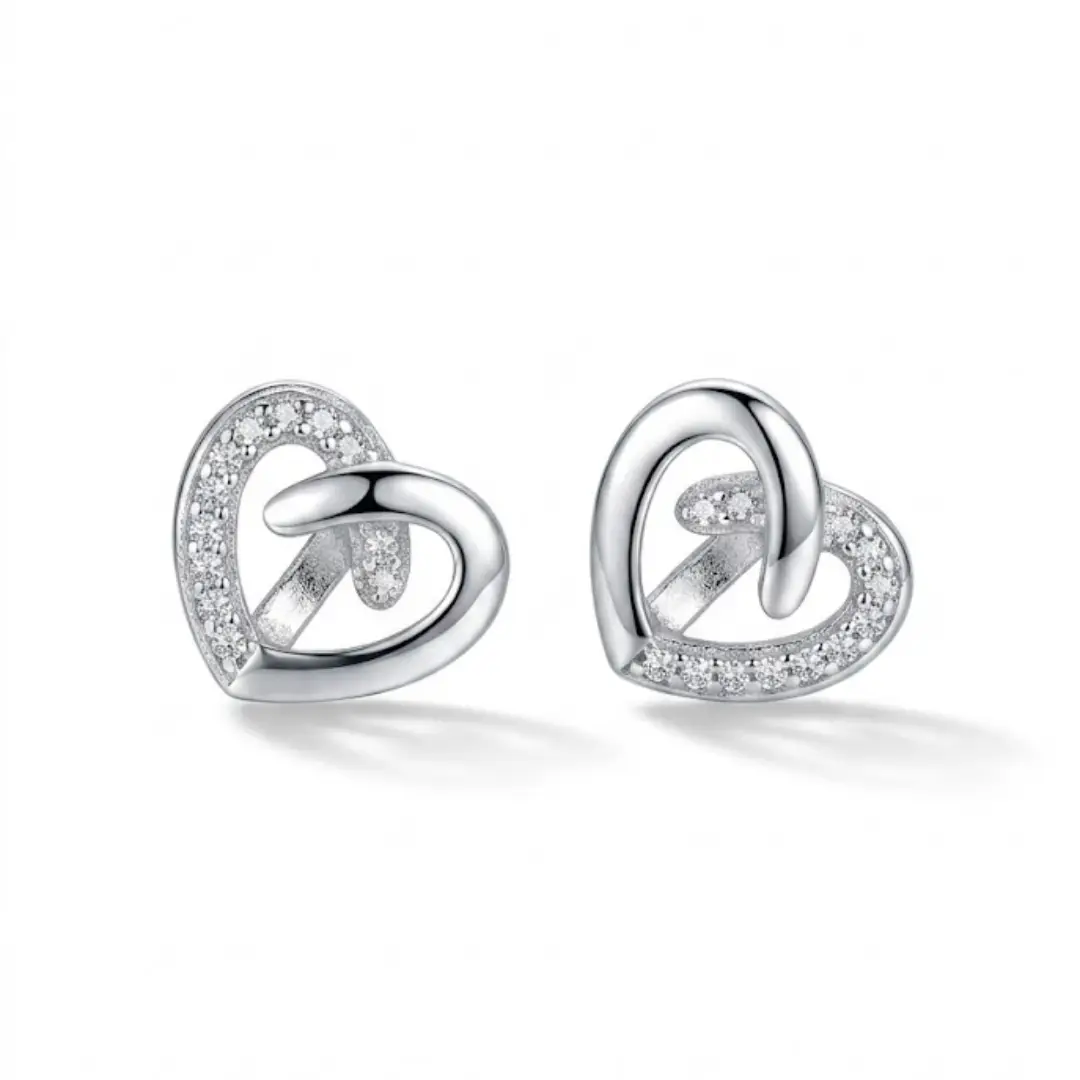Add a touch of timeless romance to your jewelry collection with these exquisite 925 Silver Heart Earrings. Crafted with precision, these earrings feature a unique intertwined heart design. One half of the heart is polished to a high-shine mirror finish, while the other is delicately encrusted with sparkling fine-cut zircons. This combination of classic silver and shimmering stones makes them the perfect accessory for both daily wear and special celebrations.