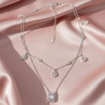 Elegant Layered Teardrop & Rectangle Pendant 925 Silver Women’s Necklace