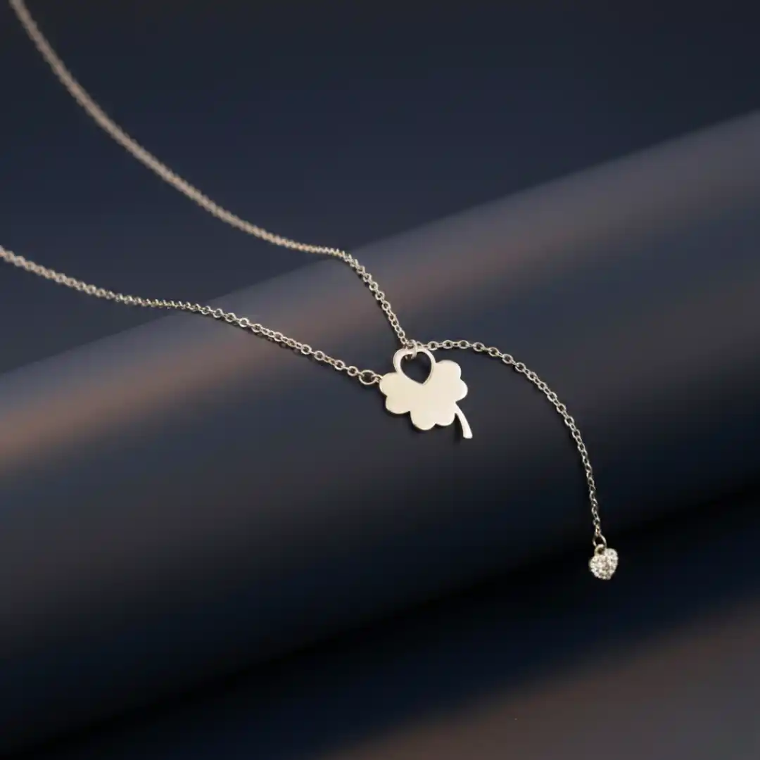 Elevate your jewelry collection with The VelvetBox. Our Elegant Silver Chain Pendant is a true masterpiece of fine craftsmanship. This specific design features a unique aesthetic. Specifically, it blends a classic clover silhouette with a modern heart cutout. Therefore, it is a sophisticated necklace for the modern woman.
