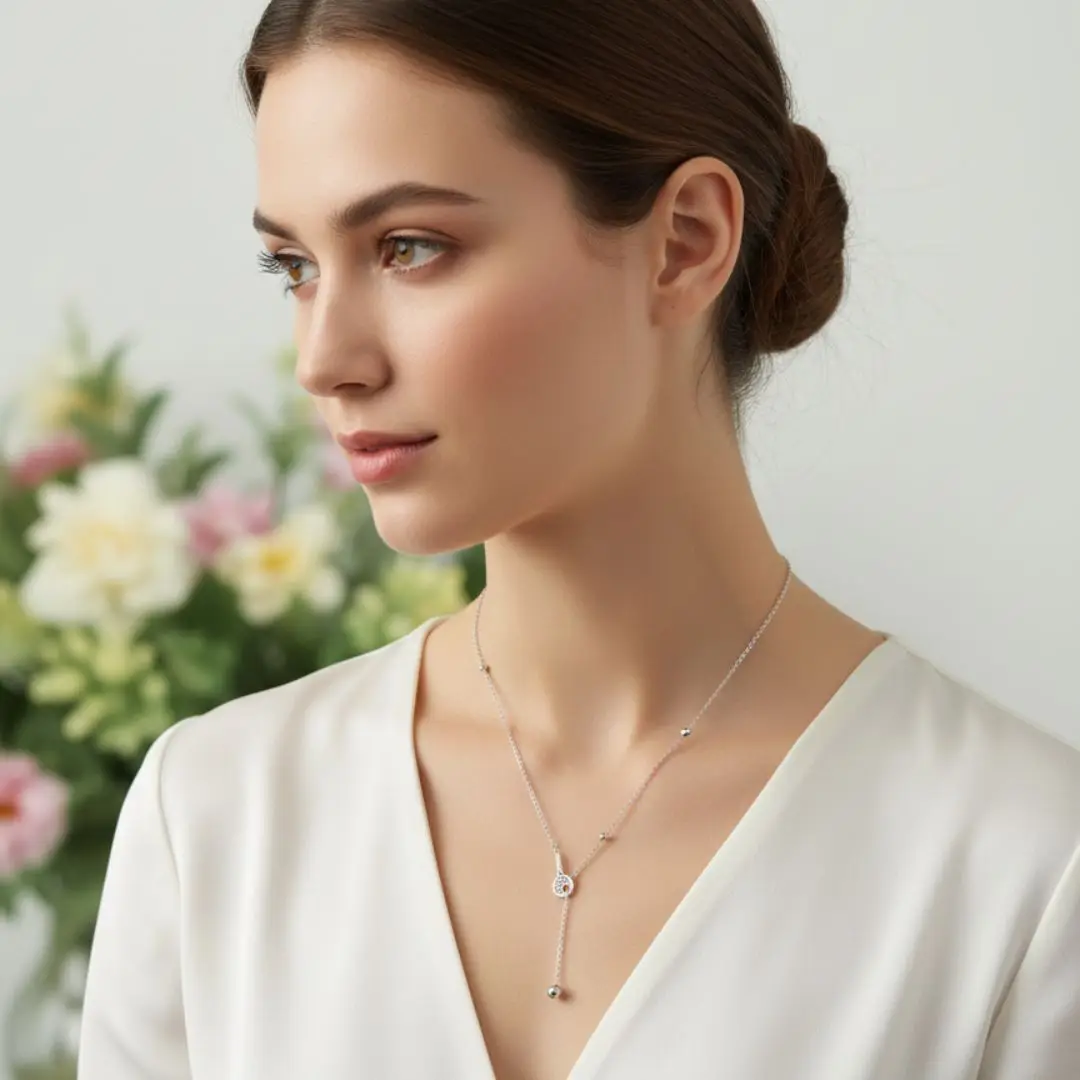 Upgrade your jewelry collection with this elegant silver Y-style necklace, designed to add a refined and contemporary touch to your look. Featuring a sleek vertical drop design, this necklace is highlighted by a delicate circular charm with intricate detailing and a polished silver bead accent. The adjustable drop chain allows you to customize the length, making it perfect for styling with different necklines.