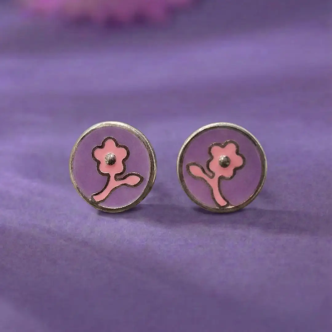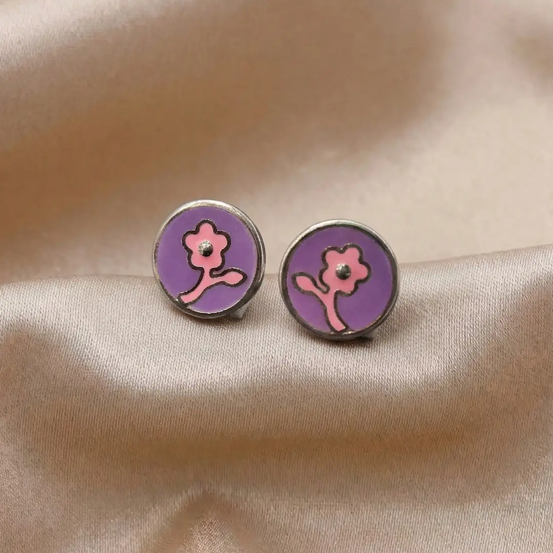 Add a touch of whimsical elegance to your jewelry collection with our Floral Enamel 925 Silver Stud Earrings. These handcrafted pieces feature a delicate pink flower motif set against a vibrant purple enamel backdrop, encased in high-quality sterling silver. Designed for the modern woman who loves minimalist yet colorful accessories, these stud earrings are perfect for office wear, casual outings, or gifting to a loved one.