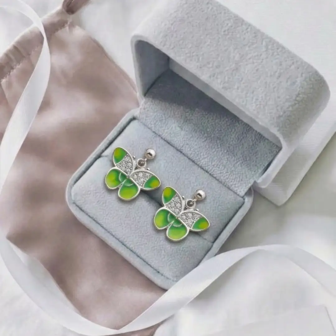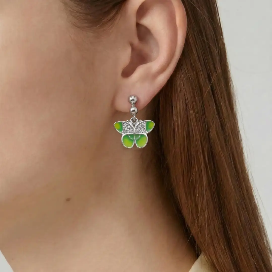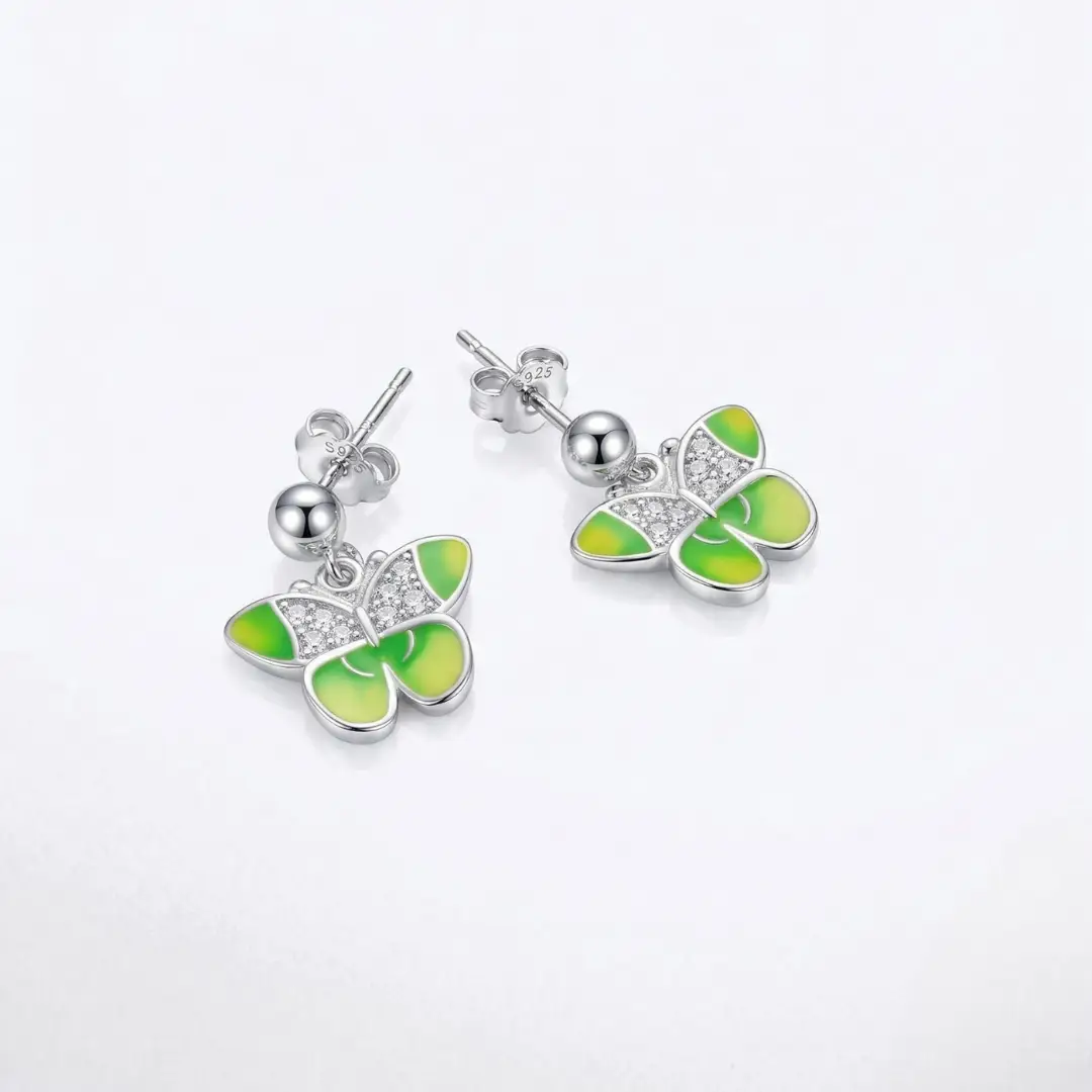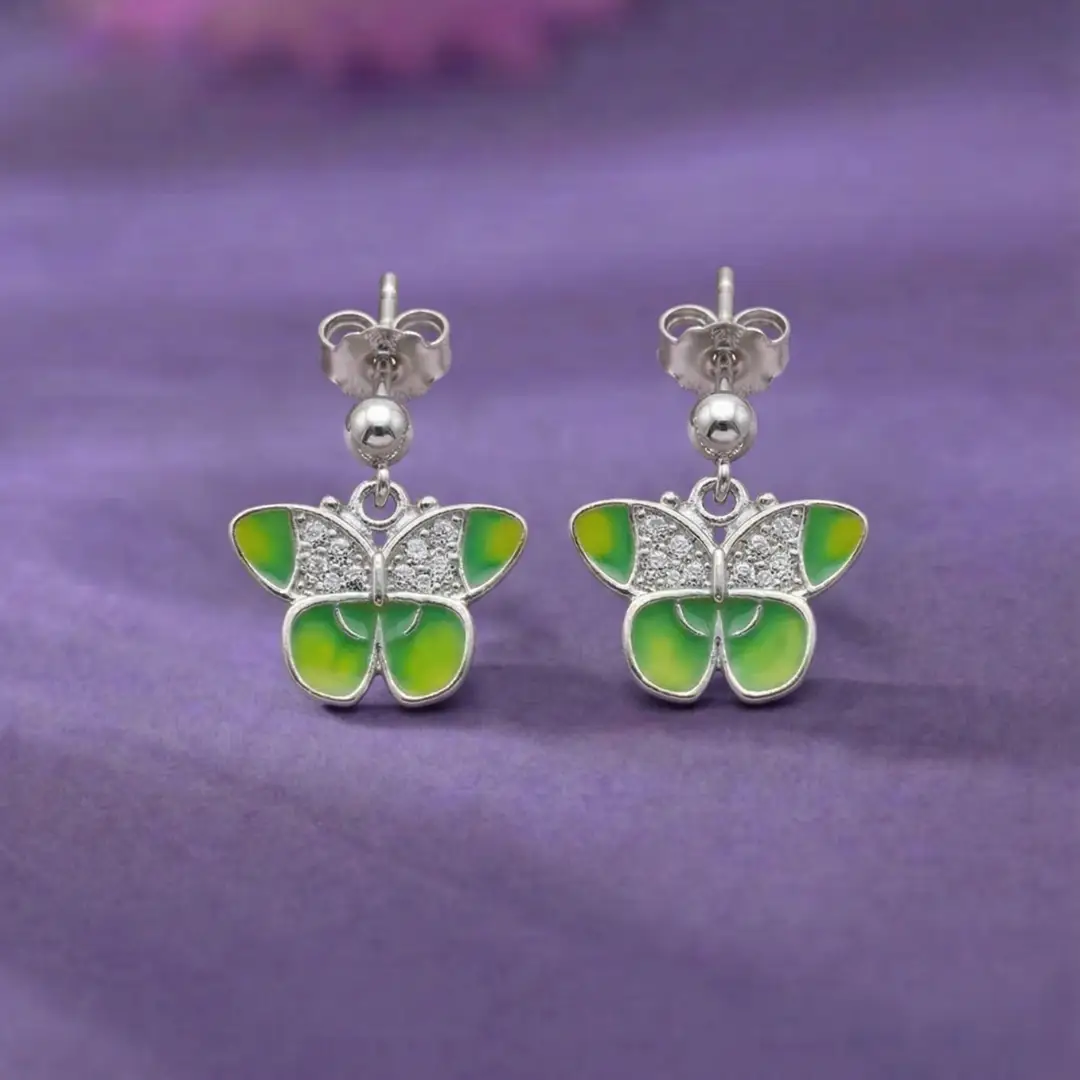 - Design: Intricate butterfly drop design with green gradient enamel and crystal embellishments.