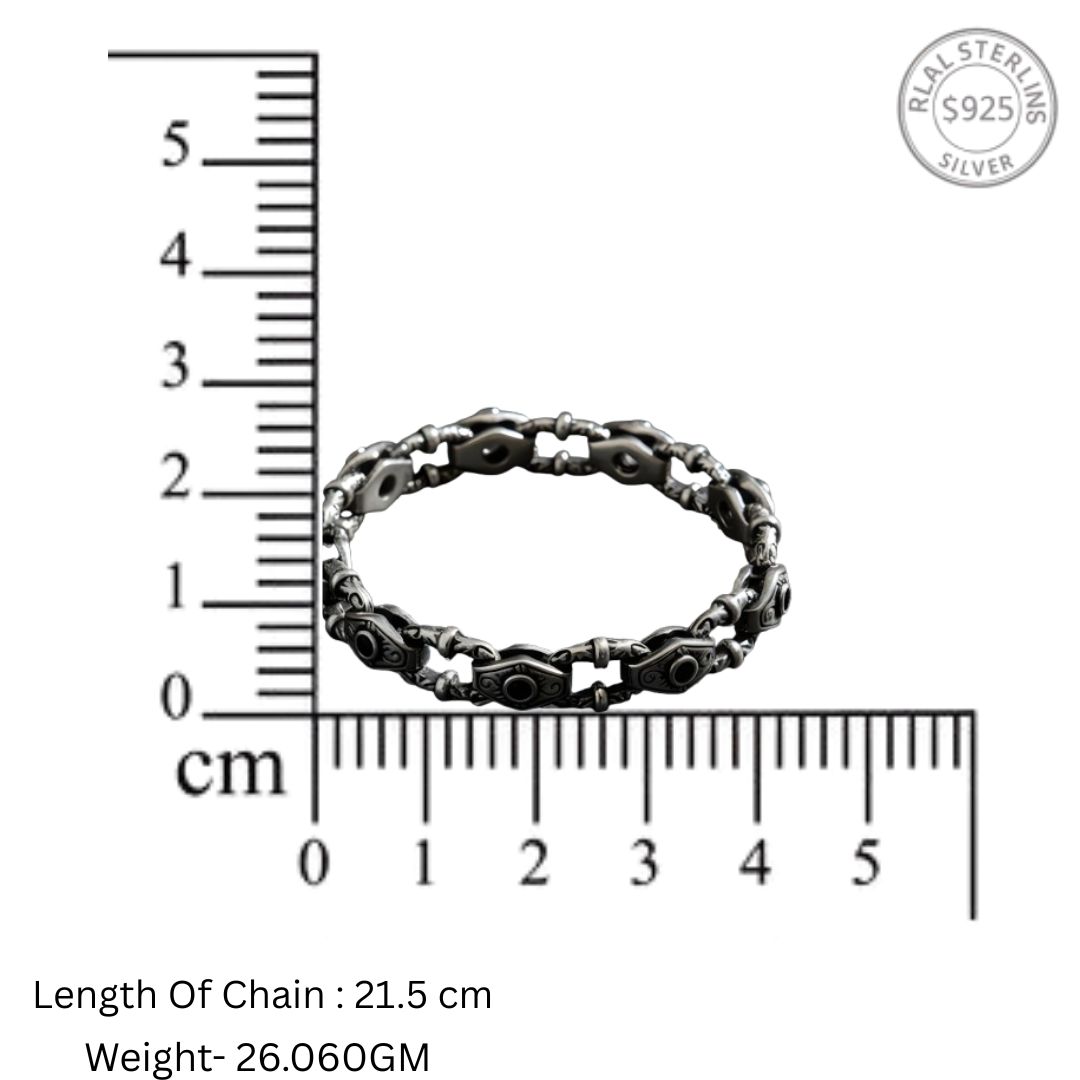 Make a bold and refined statement with the Ornate Shield-Link 925 Silver Men’s Bracelet with Black Onyx — a stunning fusion of craftsmanship, strength, and sophistication. Meticulously handcrafted from pure 925 sterling silver, this bracelet features an intricate shield-link design enhanced with a genuine black onyx stone at its center.