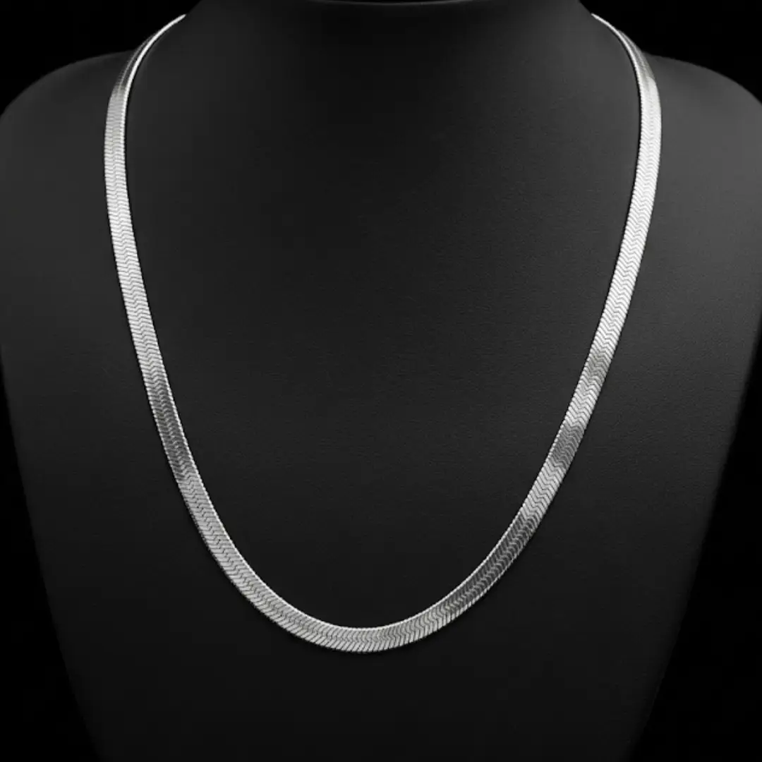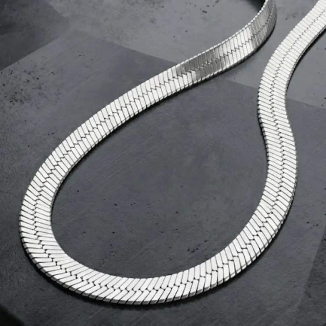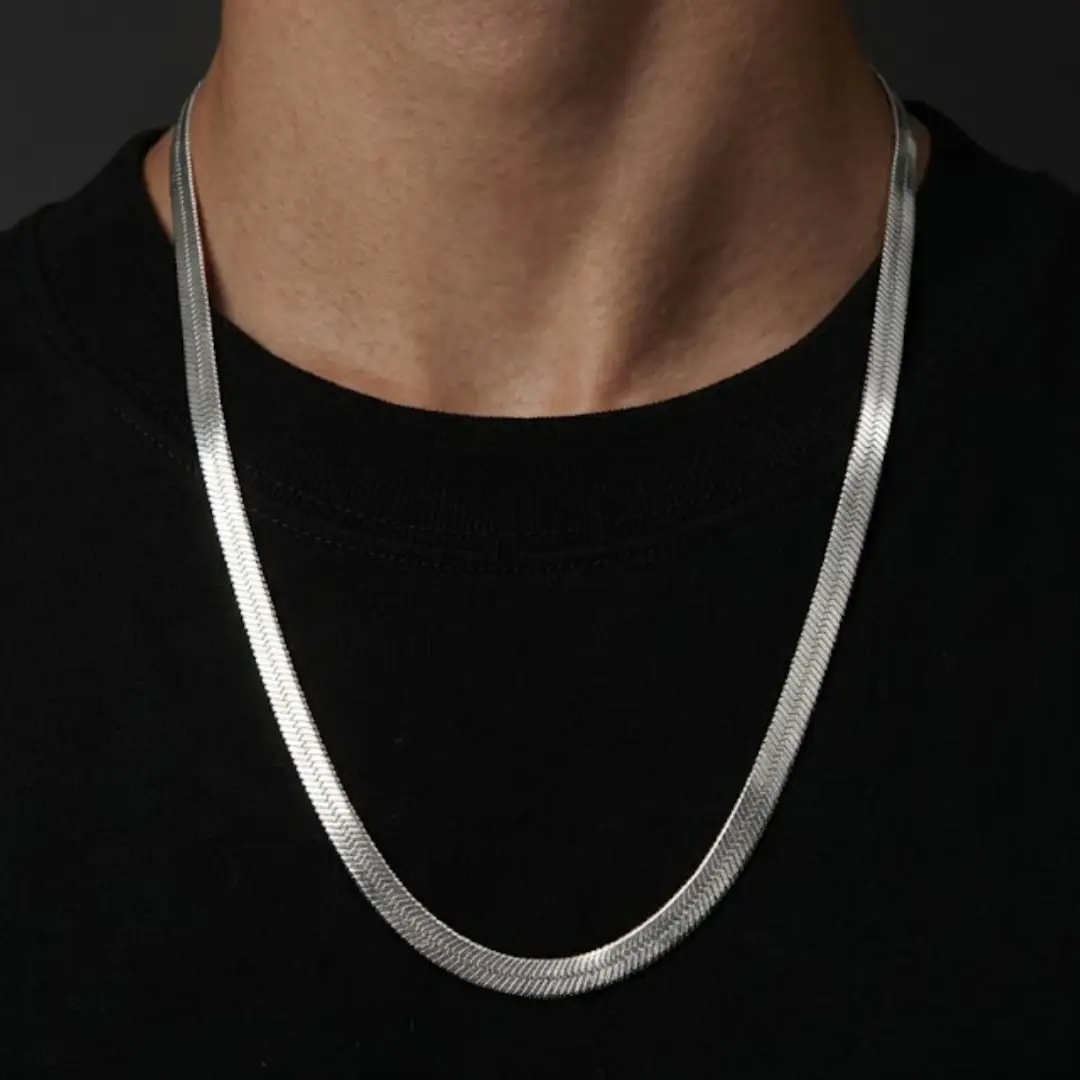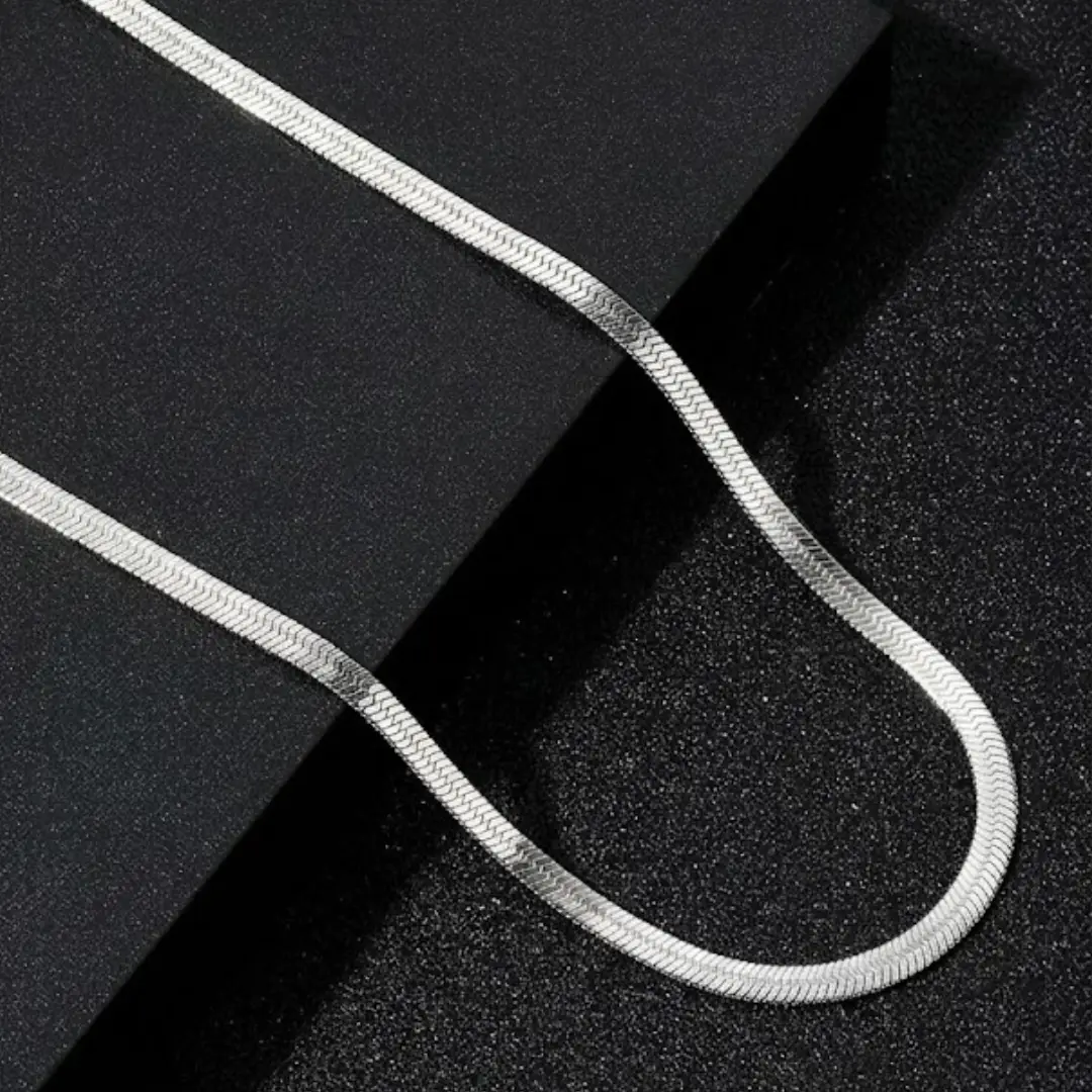 Discover the perfect blend of sophistication and masculinity with our premium 925 Silver Chain. Designed specifically for the modern man, this herringbone (snake-style) chain offers a smooth, flat profile that sits perfectly against the skin, providing both comfort and a high-end luxury look.