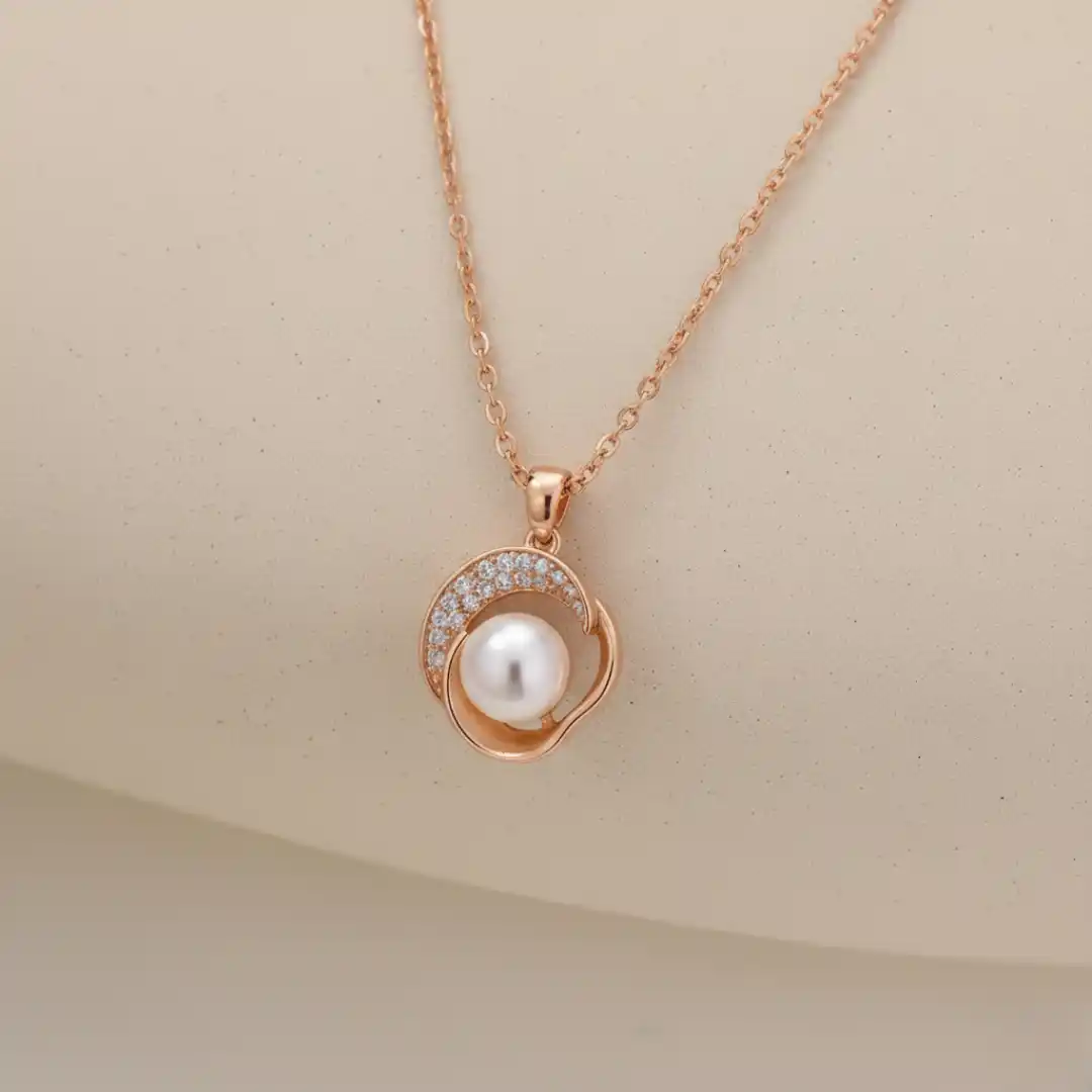 ✨ Exquisite Design – A premium rose gold pearl pendant featuring high-luster stones