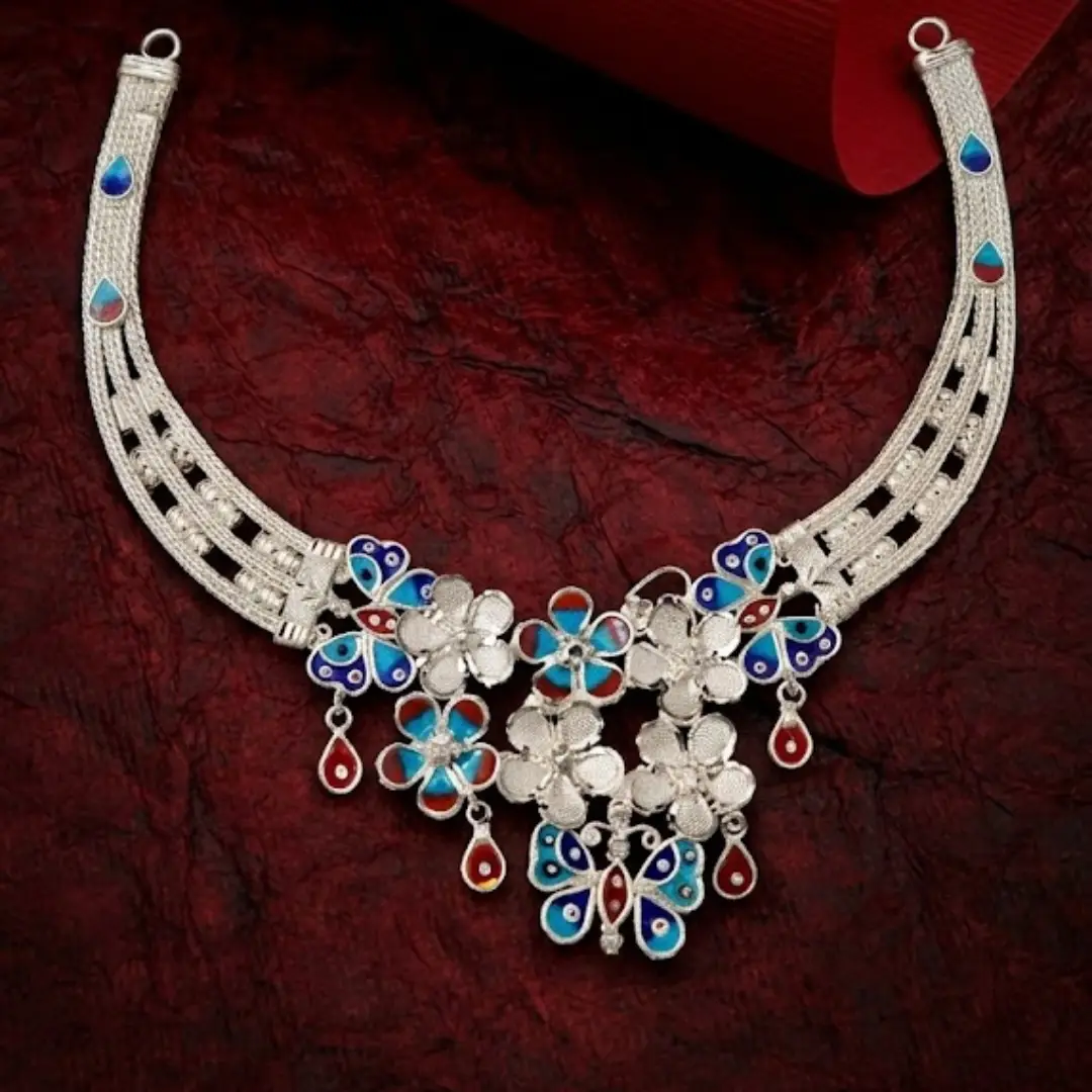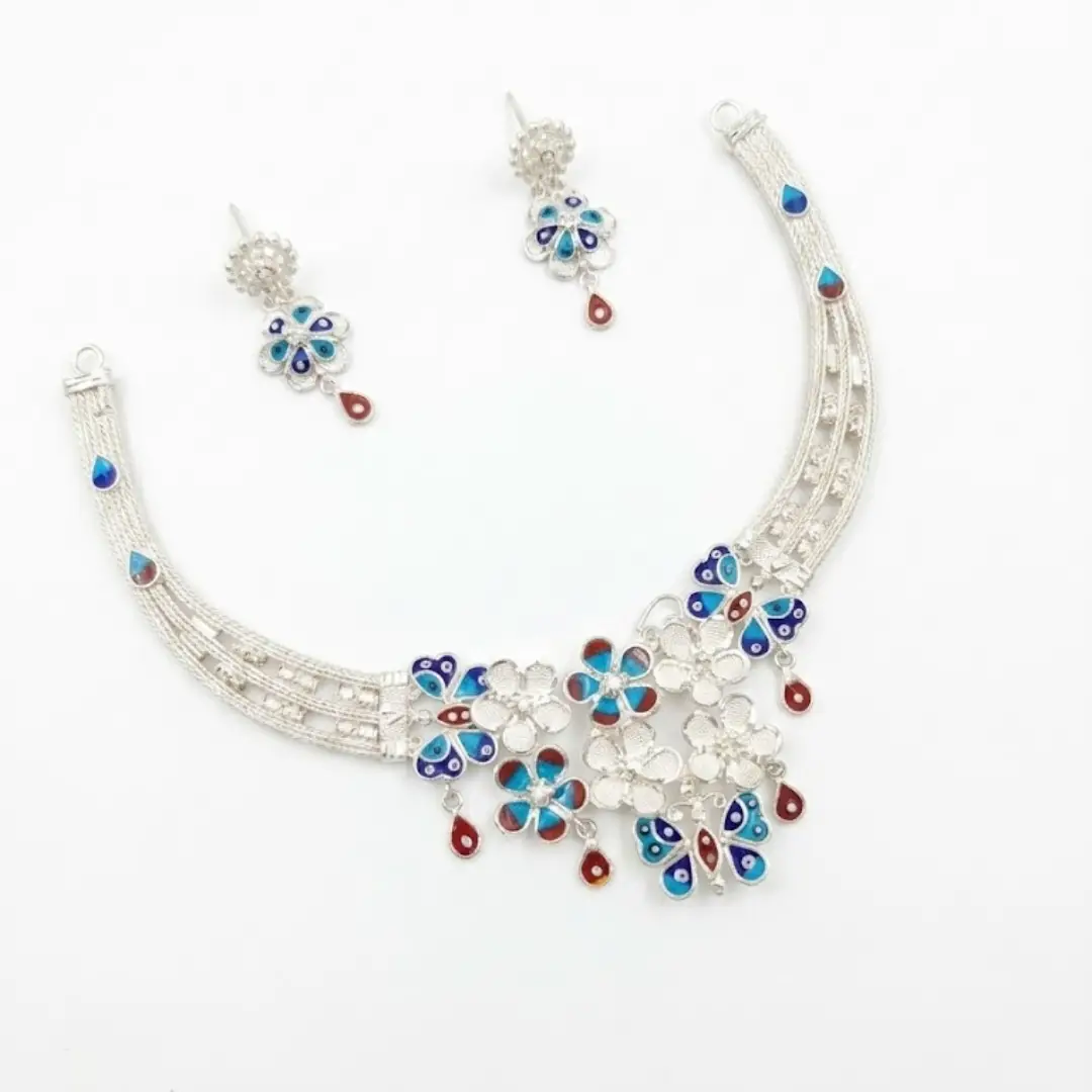 Why follow when you can lead? The Velvet Box presents a necklace set that defines high-class sophistication. This is not just an accessory; it is a symbol of grace, power, and unmatched heritage. Featuring a breathtaking butterfly motif surrounded by an eternal garden of silver blooms, this set is for the woman who demands perfection.