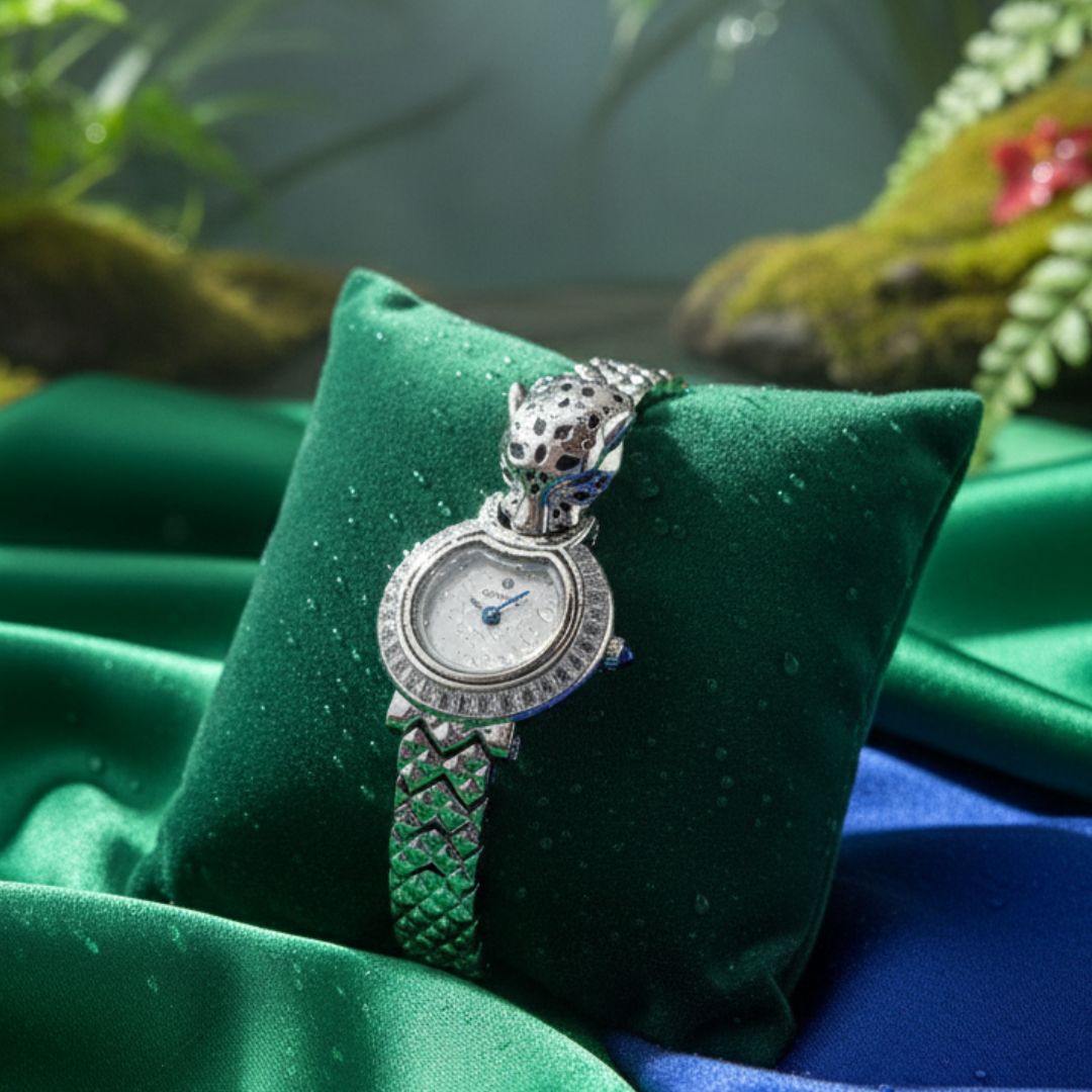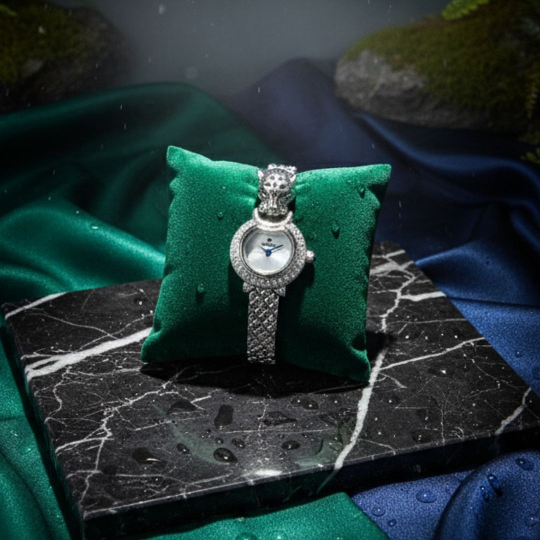 Step into timeless sophistication with the Royal Panther 925 Silver Women’s Luxury Bracelet Watch — where strength meets elegance. Handcrafted from genuine 925 sterling silver, this exquisite bracelet watch features an iconic panther-head motif clasp symbolizing courage and allure. The intricate diamond-cut pattern, paired with a sleek round dial, brings an air of modern royalty to your wrist.