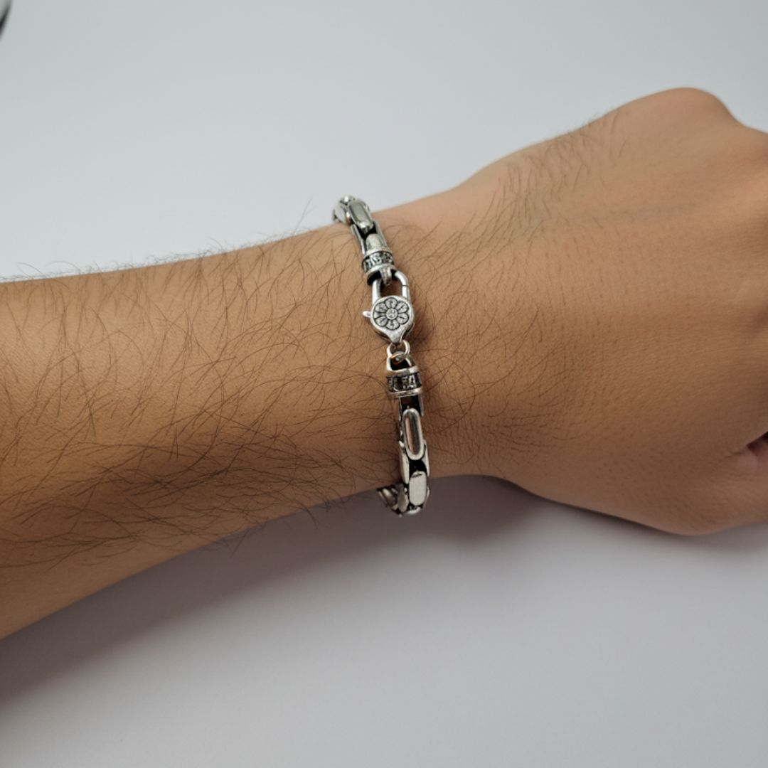 Exude power and personality with the Rugged Oxidized 925 Silver Men’s Chain Bracelet with Artisan Clasp — a bold statement of craftsmanship and masculine charm. This bracelet is handcrafted from solid 925 sterling silver and features a distinct oxidized finish that adds depth and a vintage appeal.