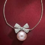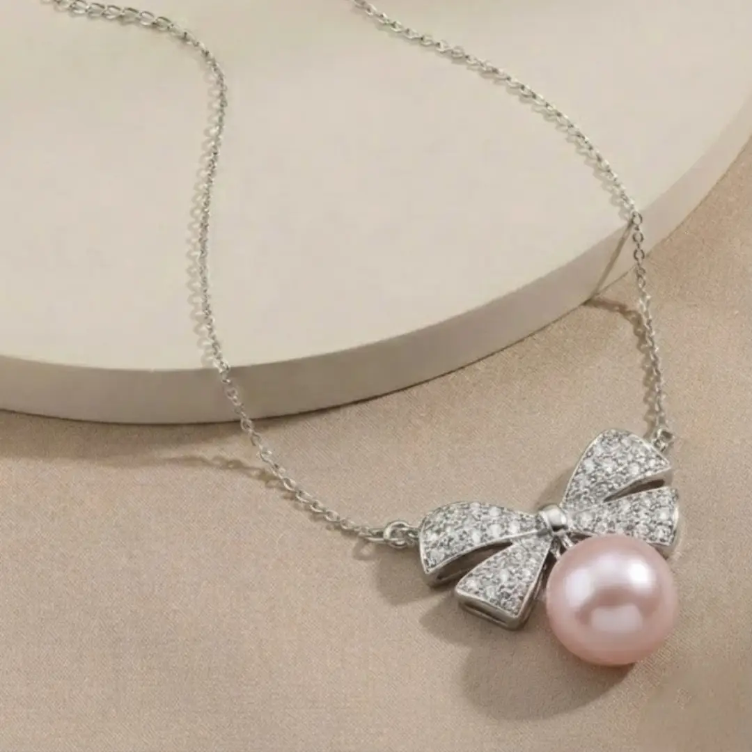 Radiant Pearl & Stone Settings: Our artisans intricately set the bow motif with shimmering stones. These lead down to a lustrous, high-grade pearl that catches the light beautifully.