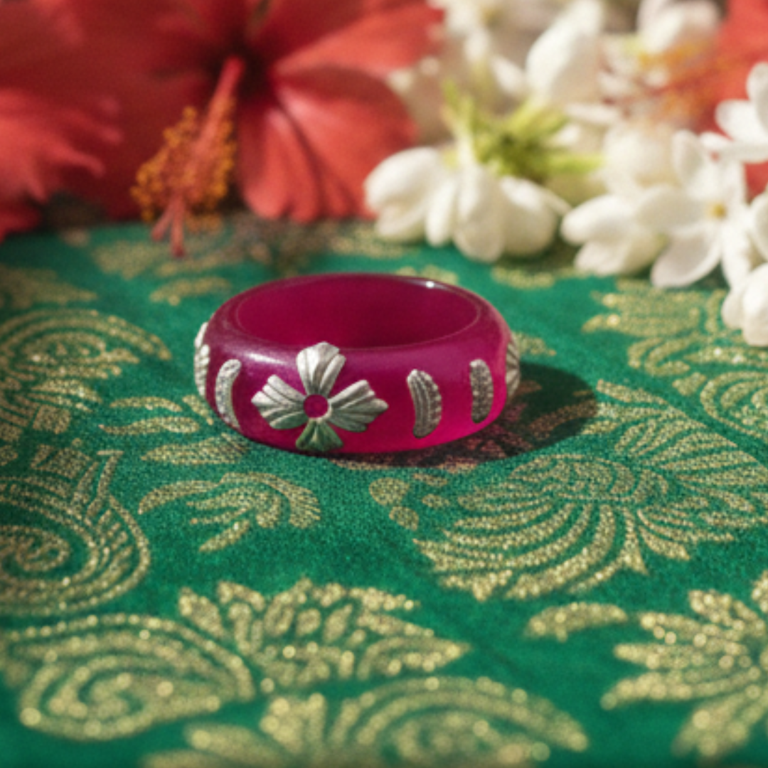Experience a stunning blend of cultural heritage and contemporary grace with our Silver Floral Pola Ring. This signature piece belongs to our luxury collection. The handcrafted masterpiece serves as a perfect accessory for those who cherish traditional “Pola” artistry at The VelvetBox. If you wish to explore trendy designs for women, this nature-inspired piece offers a unique aesthetic. It bridges the gap between heritage and modern fashion effortlessly. Specifically, this LADIES RING POLA features a vibrant base with intricate silver floral motifs. These details ensure a regal look for any occasion. Furthermore, the high-quality craftsmanship ensures these Pola Rings with Silver accents maintain their luster. They also provide a comfortable fit for your daily wear.