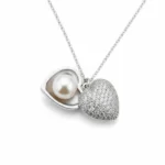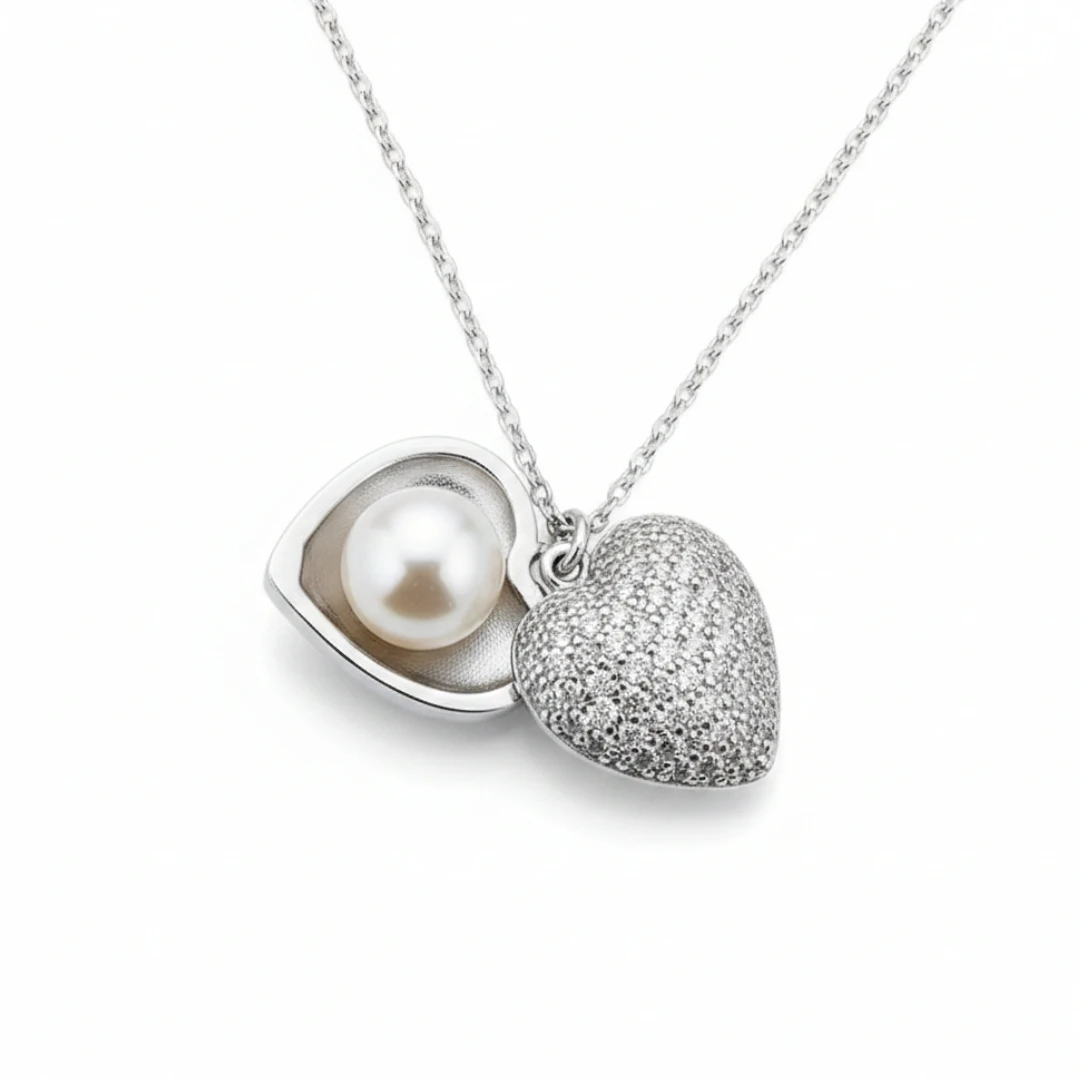 This specific heart locket with pearl is more than just a pendant; it is a work of art. The exterior is encrusted with a Pave Crystal design, ensuring that it catches the light beautifully from every angle. Upon opening the silver casing, the surprise of an embedded gemstone adds a layer of unexpected luxury.
