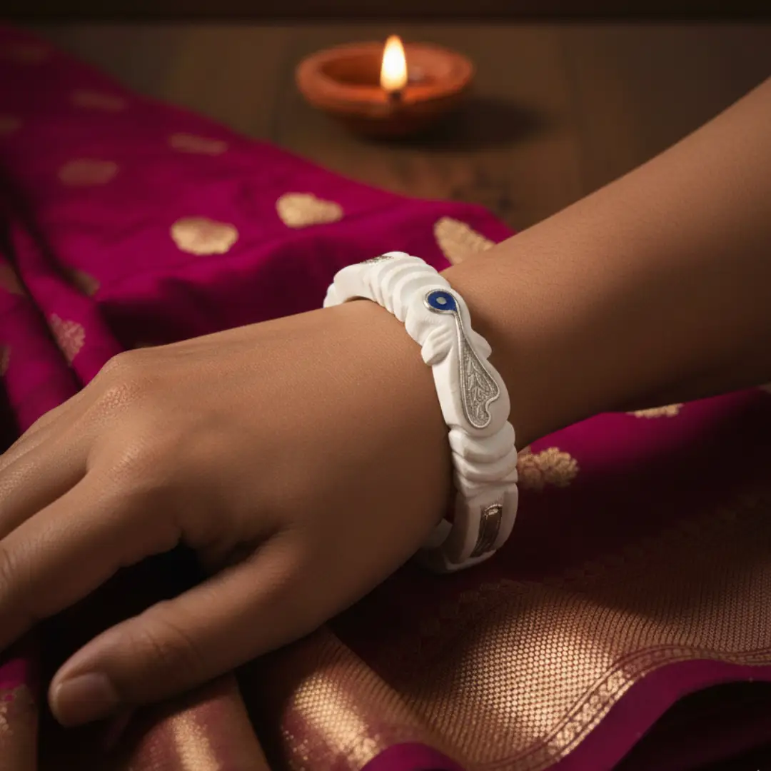 Authenticity is our core promise. We craft every Silver Sakha Bangle online from high-grade 925 Sterling Silver. To provide our customers with peace of mind, the Bureau of Indian Standards (BIS) hallmarks each piece. This hallmark certifies the purity of the metal.