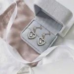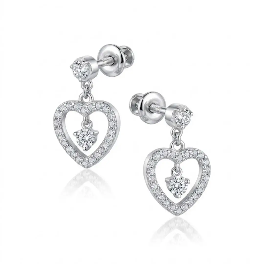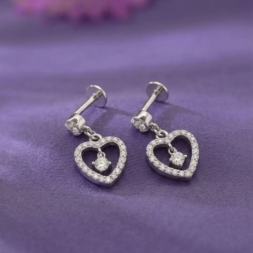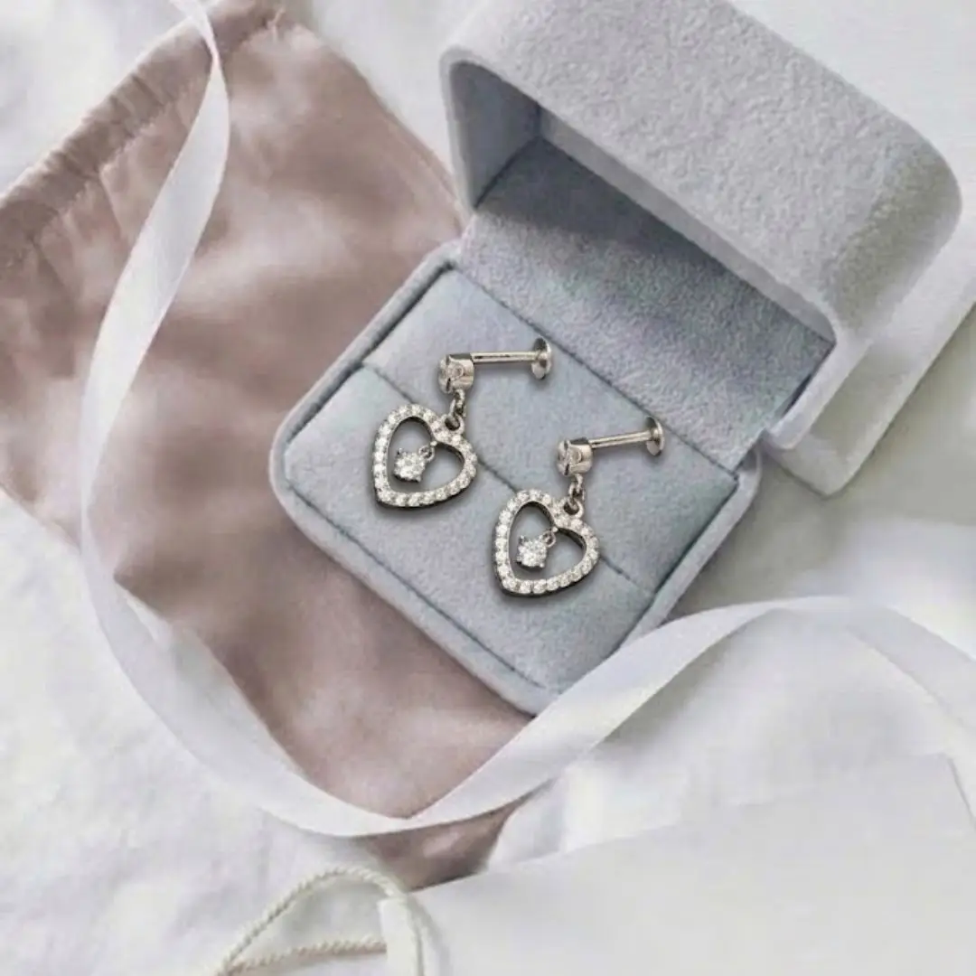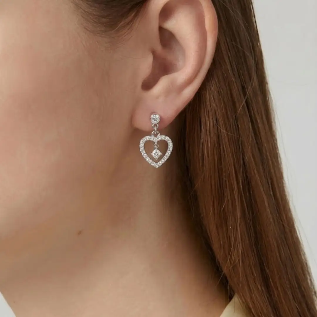 - Design: Romantic heart-shaped halo drop with brilliant-cut accents.