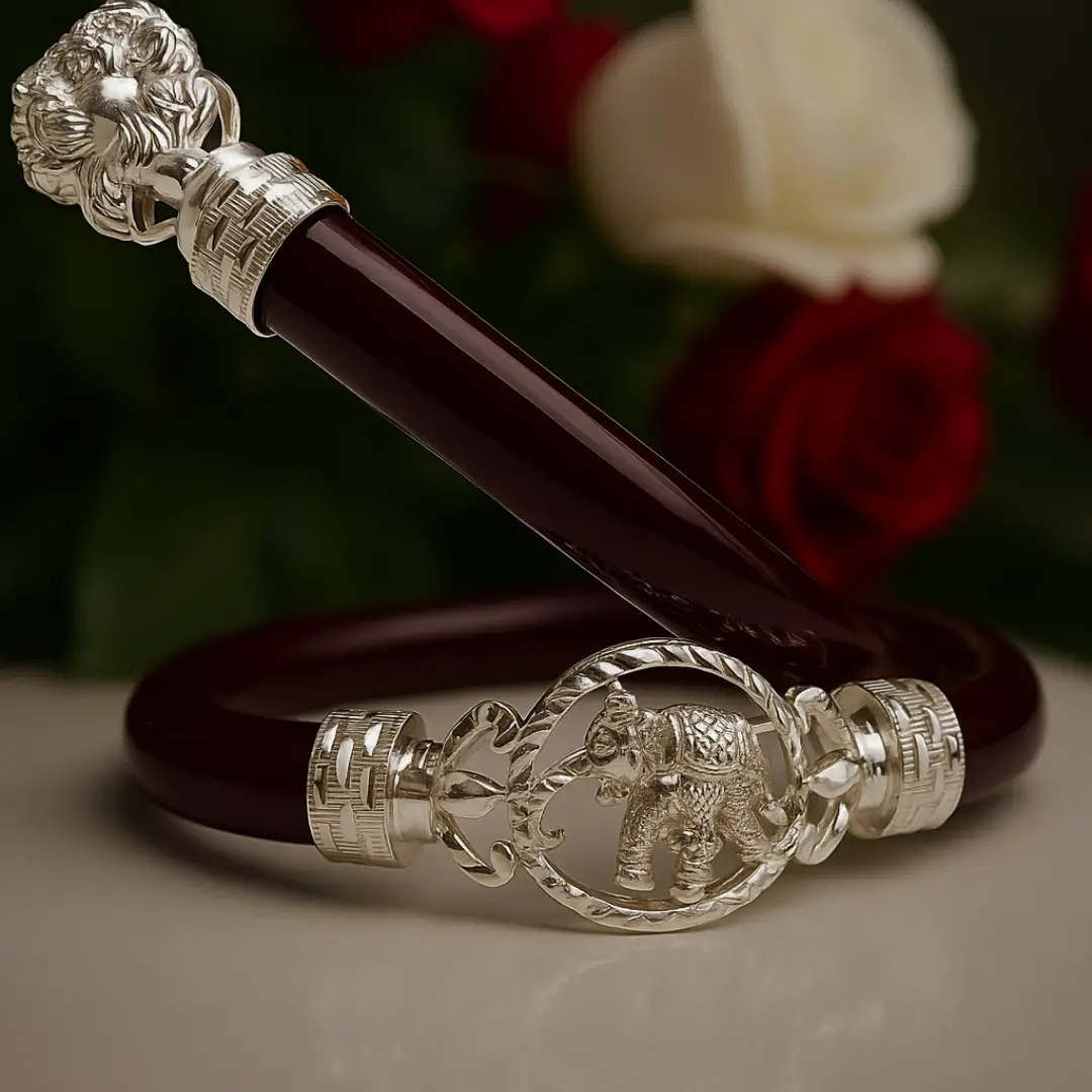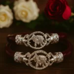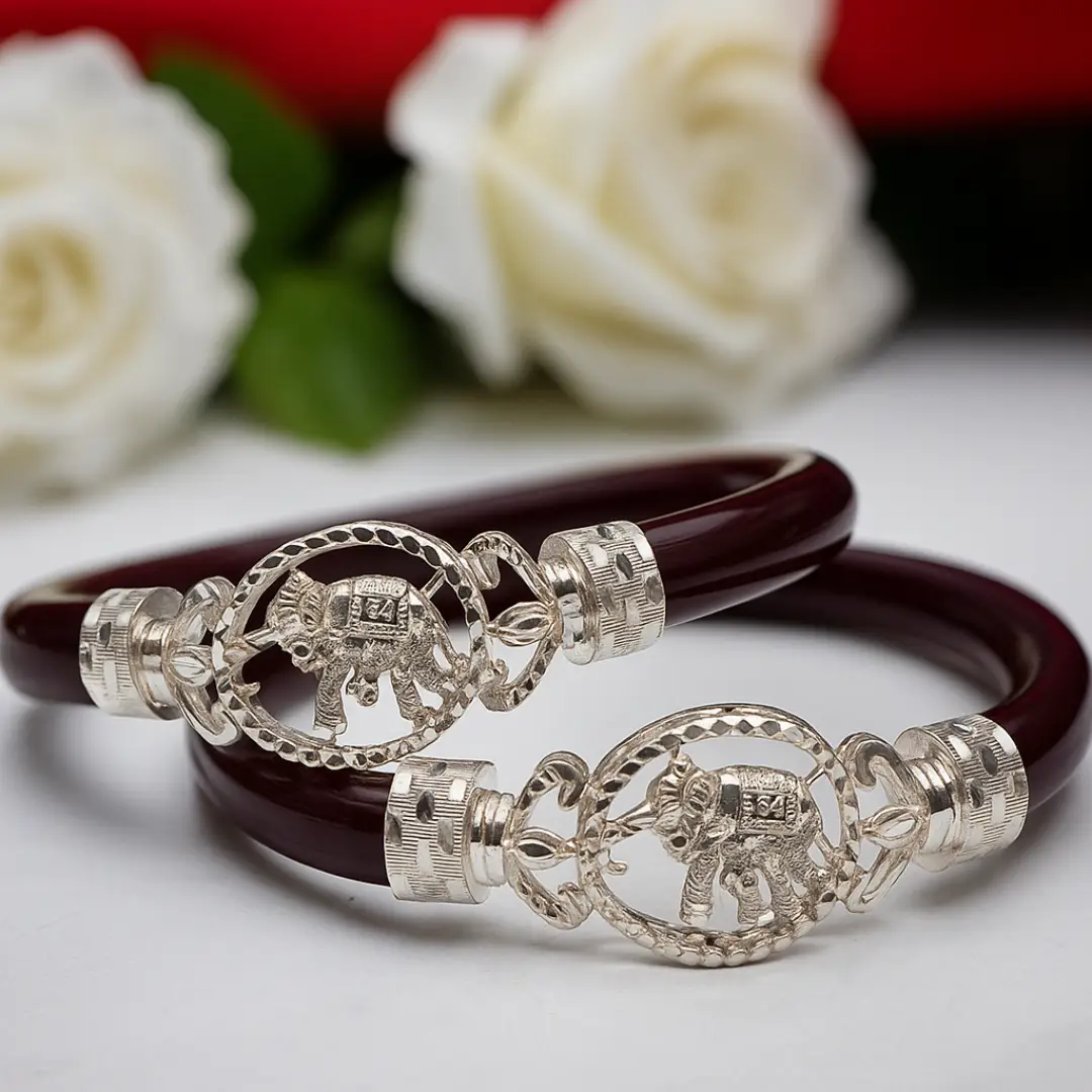 Celebrate tradition and style with the The Velvet Box 925 Silver Maroon Elephant Pola Bangle. Made from high-quality 925 sterling silver, this bangle features a classic pola design adorned with a vibrant maroon elephant motif, symbolizing strength, luck, and elegance. Lightweight, durable, and finely polished, it’s perfect for daily wear, special occasions, or gifting to loved ones. Add this exquisite piece to your jewelry collection for a timeless blend of charm and sophistication.
