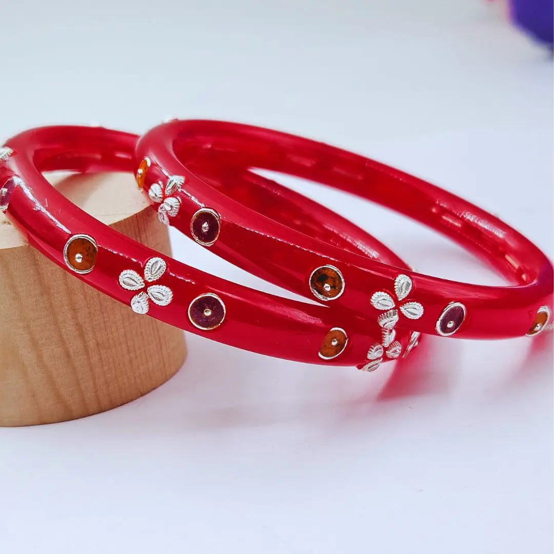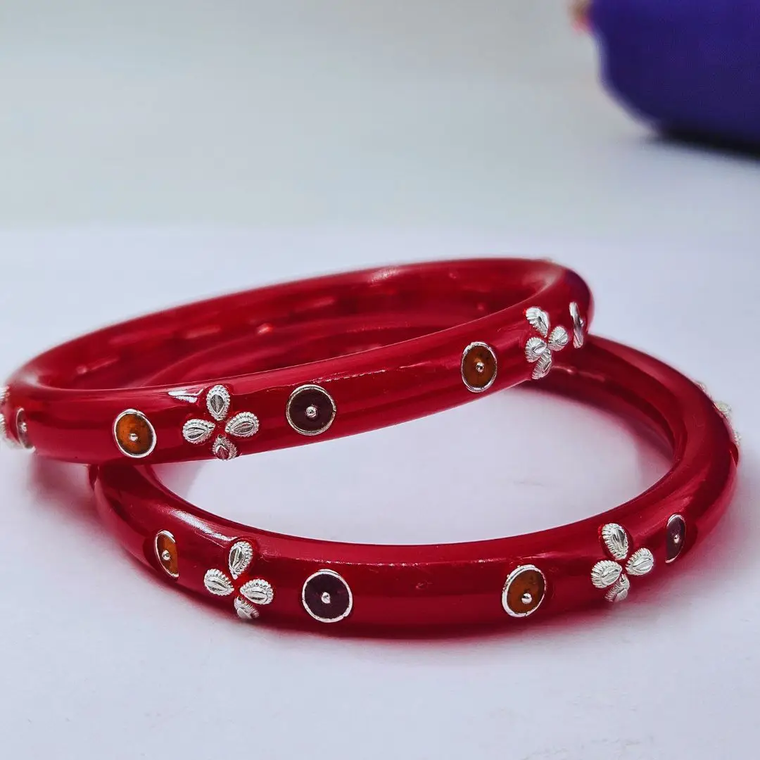 The Velvet Box 925 Sterling Silver Red Pola Bangle is a beautifully crafted traditional accessory designed for wholesale and bulk resale. Made with high-quality 925 sterling silver and featuring a vibrant red glossy Pola base with an elegant dual silver-tone round filigree motif, this bangle combines durability, comfort, and classic ethnic charm. Perfect for festive occasions, weddings, puja wear, and everyday ethnic styling, it is a high-demand design for boutiques, online sellers, and gift collections.