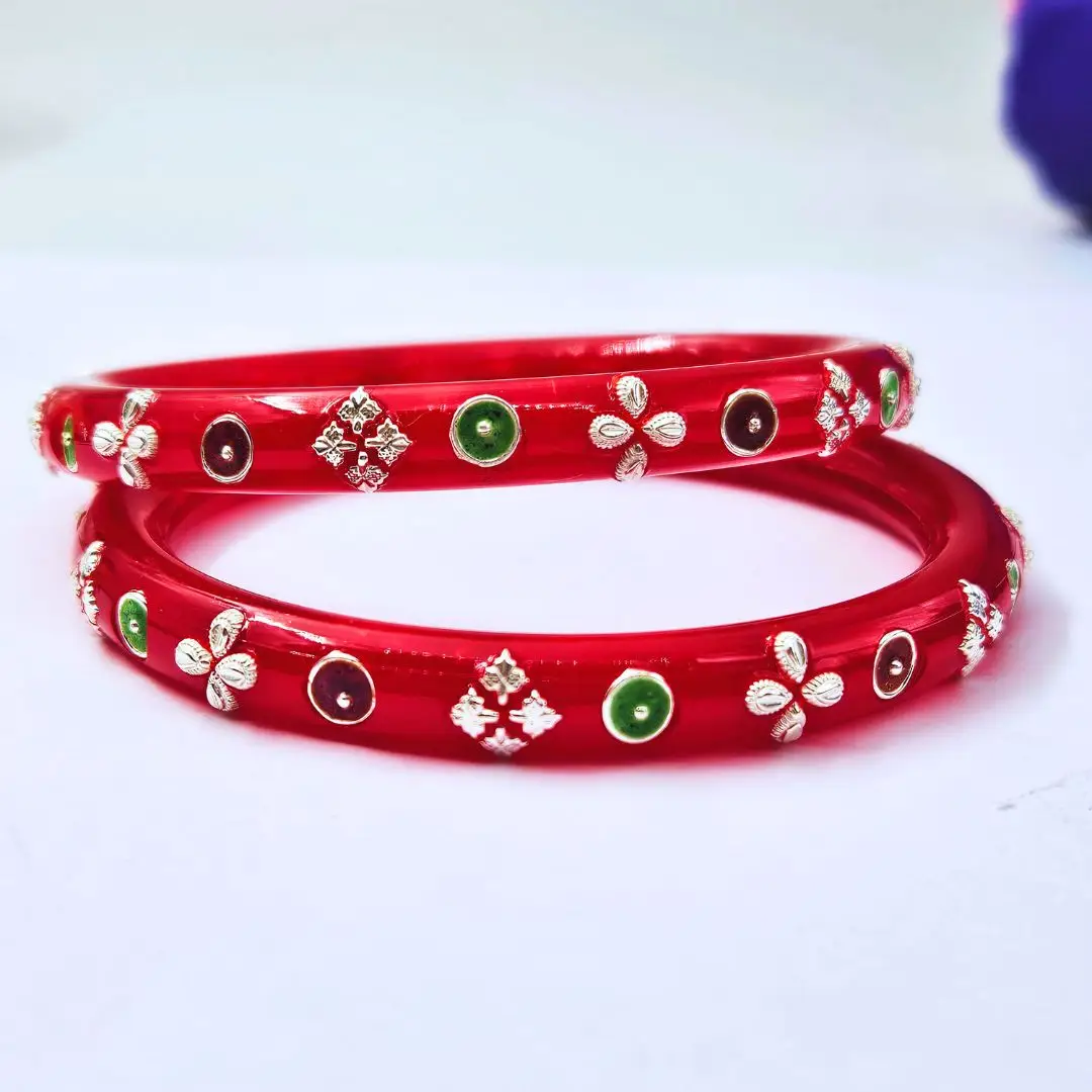The Velvet Box 925 Sterling Silver Red Pola Bangle is a traditional and elegant accessory made for wholesale and bulk orders. Featuring a vibrant red Pola base with a dual silver-tone filigree design, this bangle is lightweight, durable, and comfortable for festive wear, weddings, puja, or everyday ethnic styling. Perfect for boutiques, online sellers, and gift collections.