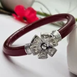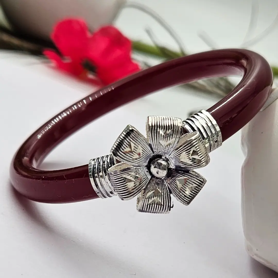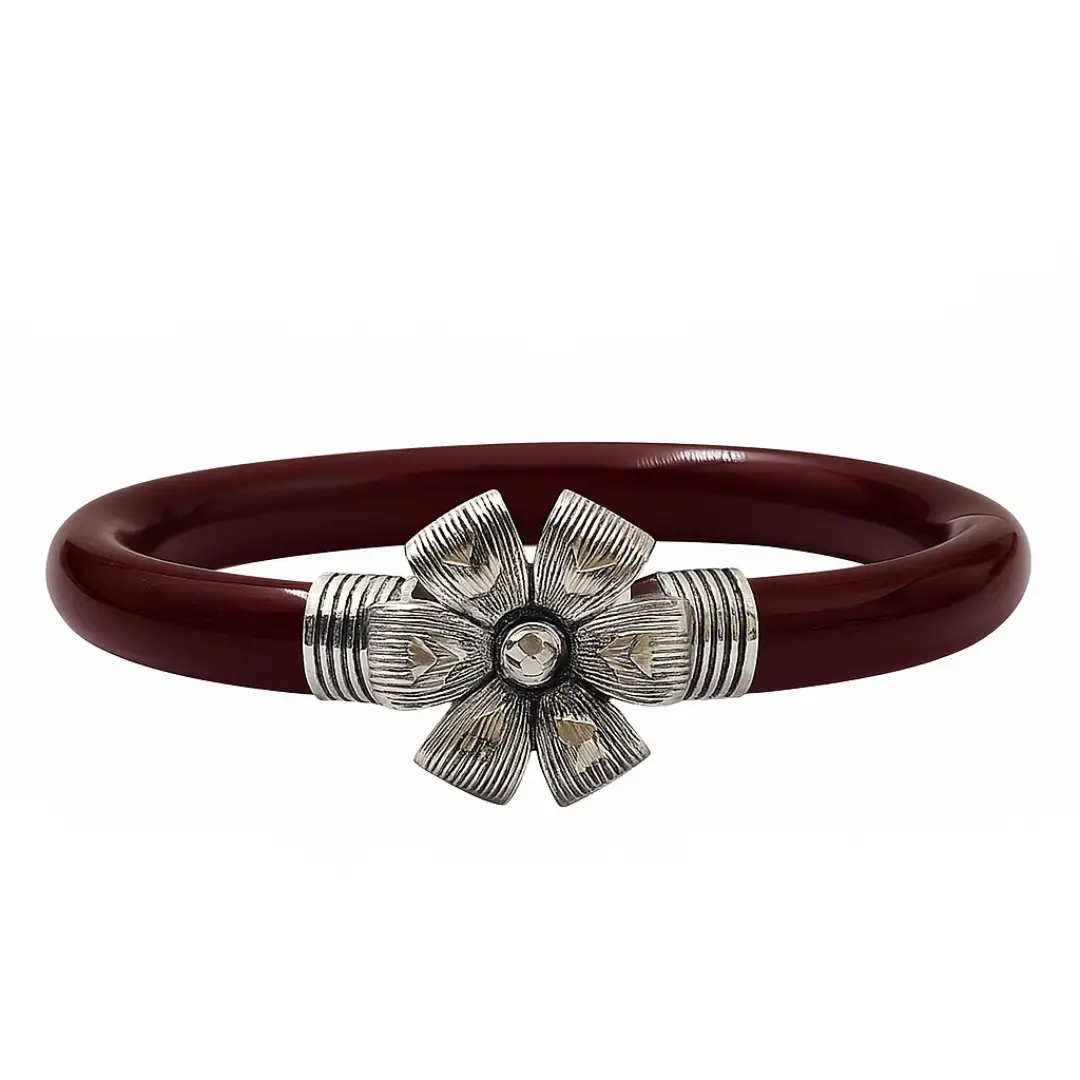 The Velvet Box Maroon Pola Floral Bracelet is a premium-quality traditional accessory designed for bulk and resale purposes. Crafted with a glossy maroon pola base and enhanced with an elegant silver-toned floral center, this bracelet offers a rich ethnic appeal that attracts customers instantly. Lightweight, durable, and skin-friendly, it is ideal for festive seasons, weddings, puja collections, and daily ethnic wear. A high-demand design suitable for boutiques, resellers, and online marketplaces.
