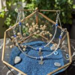 Accents: Adorned with vibrant blue beads for a pop of color.