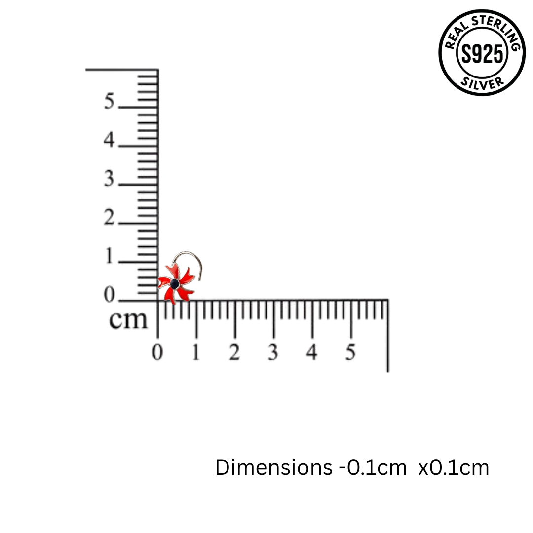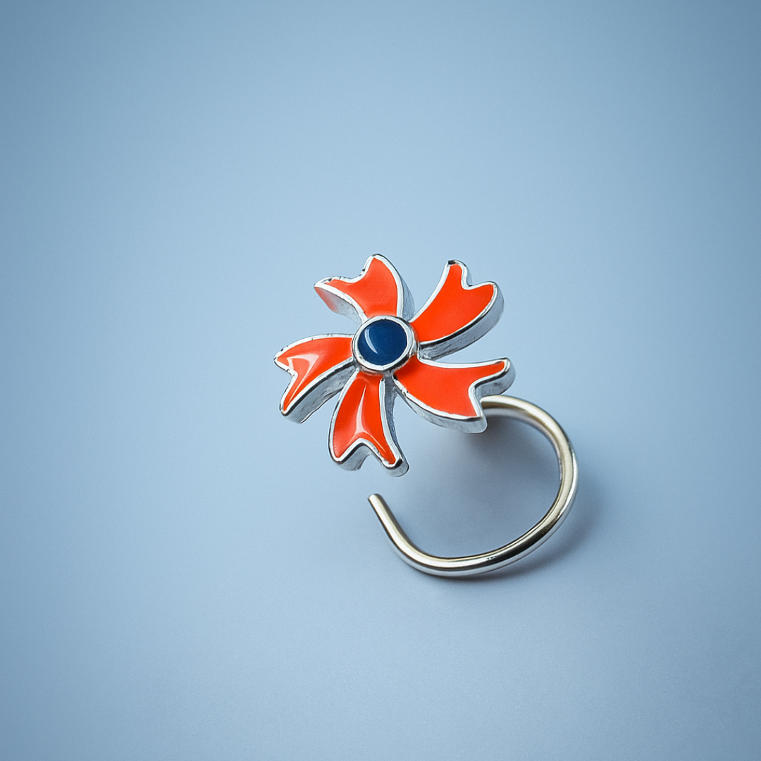 Add elegance and charm to your look with this handcrafted 925 silver floral nose pin. Designed with vibrant red enamel petals and a deep blue stone at the center, it beautifully blends tradition with modern style. Lightweight and comfortable, this nose pin is perfect for daily wear, festive occasions, and cultural celebrations. A must-have accessory for jewelry lovers who appreciate unique craftsmanship.
