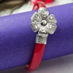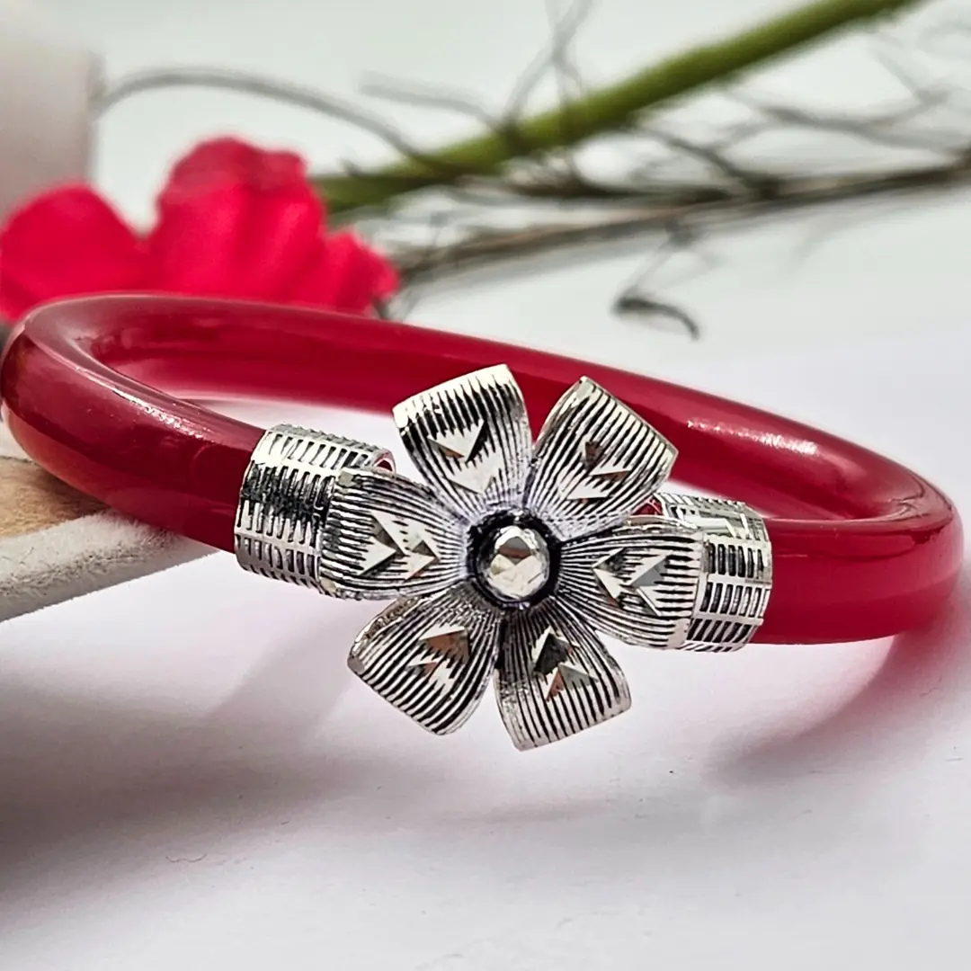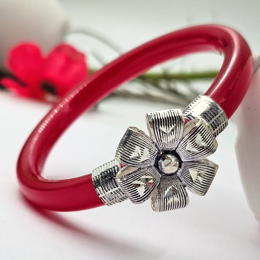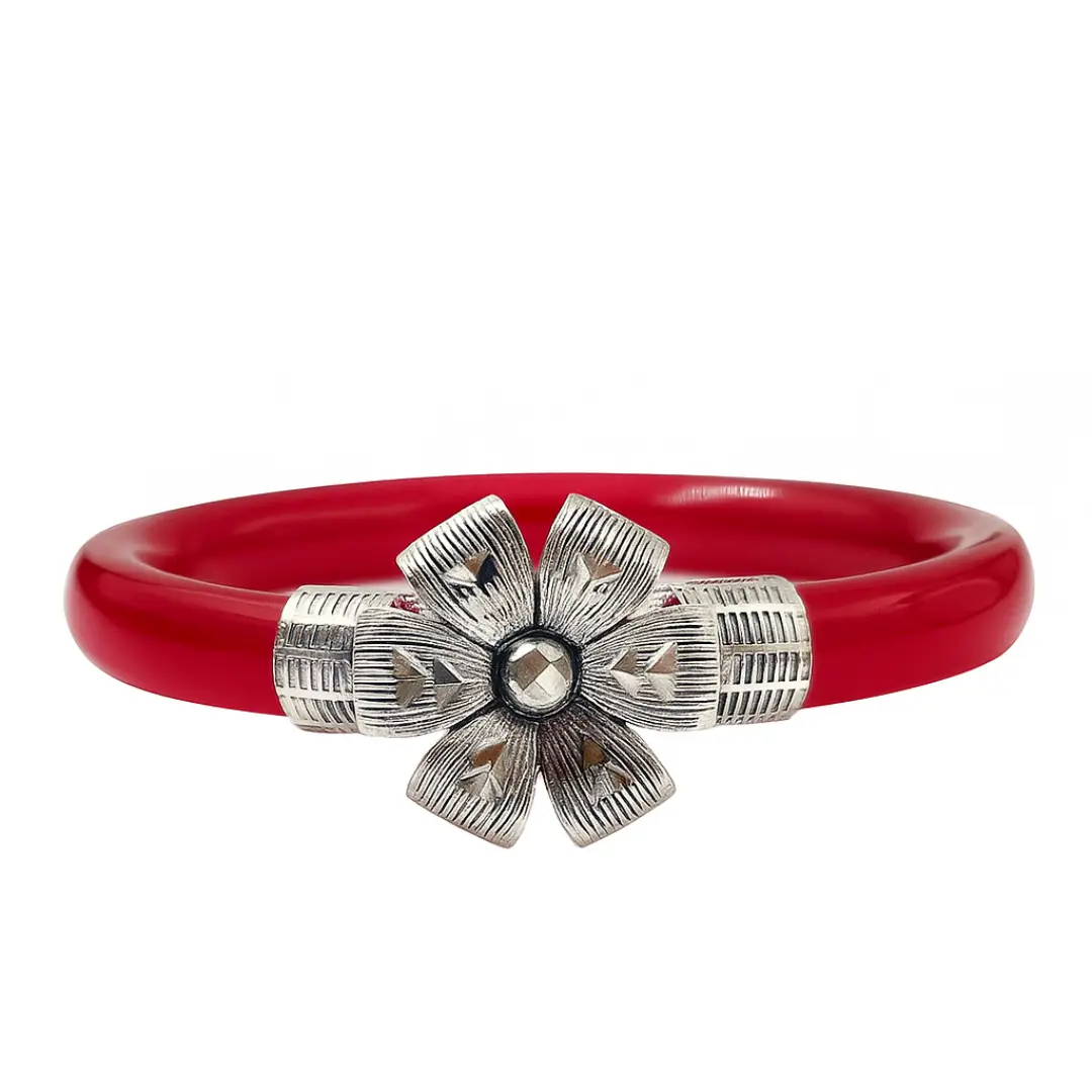 The Velvet Box Red Pola Floral Bracelet is a high-demand traditional accessory ideal for wholesale and resale. Made with a glossy red pola base and highlighted by a classic silver-toned floral centerpiece, this bracelet delivers a rich ethnic look that customers love. Lightweight, durable, and skin-friendly, it is perfect for festive wear, weddings, puja collections, and everyday ethnic styling. A fast-moving design for boutiques and online sellers.