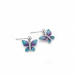 Discover the mesmerizing detail of our Turquoise & Purple Butterfly Enamel 925 Silver Drop Earrings. These artistic earrings feature a dual-tone enamel finish, blending vibrant turquoise and deep royal purple wings with delicate vein detailing. The butterfly’s spine is beautifully accented with a row of shimmering cubic zirconia crystals, suspended from a polished silver bead for a graceful hang. These drop earrings are the ultimate accessory for those who love nature-inspired luxury.