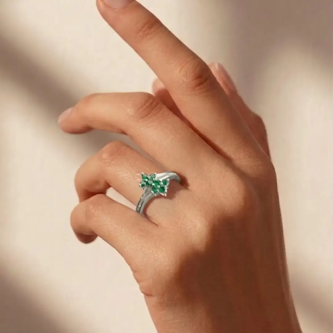 Exude Elegance with Nature-Inspired Green Brilliance Bring a touch of luxury to your style with our 925 Silver Green Stone Ring for Women. This ring showcases a stunning cluster of deep green stones, carefully arranged in a floral-inspired setting that radiates a regal and sophisticated vibe. Crafted for durability and style, it’s a perfect statement piece for any outfit.