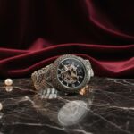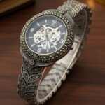 The skeleton dial offers a captivating view of the mechanical movement inside, symbolizing precision and sophistication. Its leaf-patterned bracelet adds a unique artistic touch, making it a standout accessory for men who value both craftsmanship and individuality. Perfect for formal attire or statement styling.