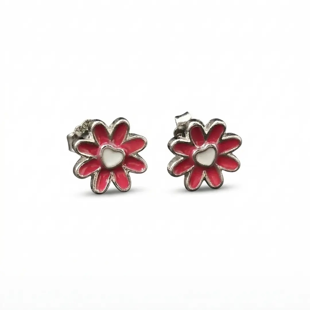 - Design: Vibrant pink enamel flower motif with a sweet white heart center.